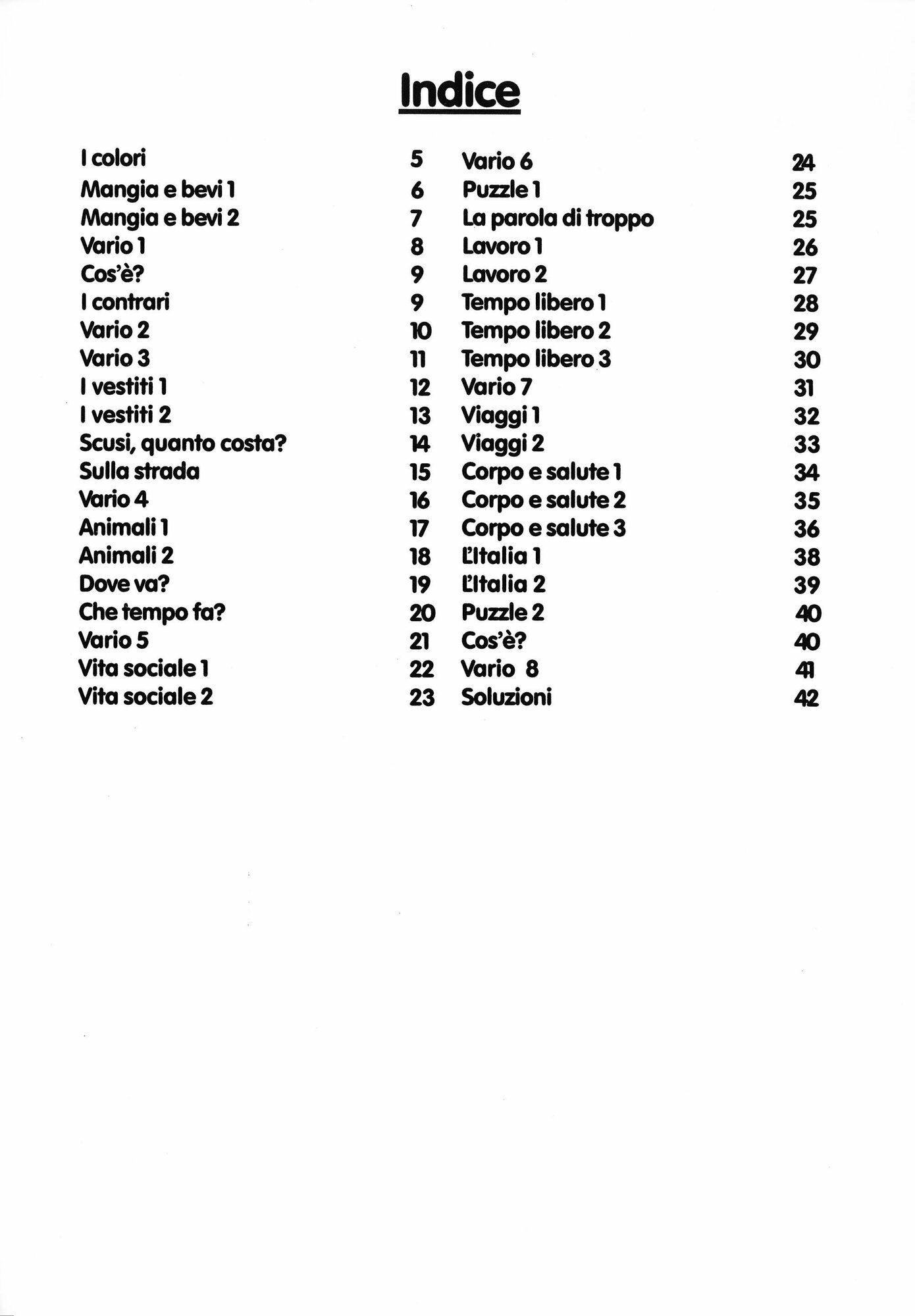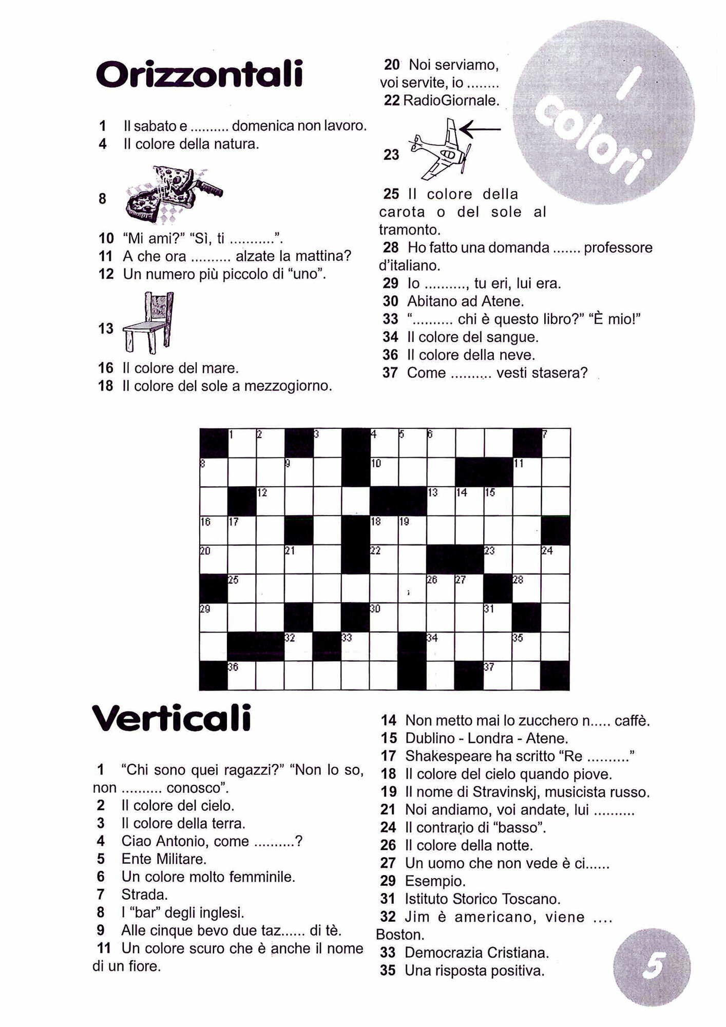 Ogni cruciverba utilizza solo le parole italiane piu frequenti e piu utili e si riferisce ad un argomento particolare (la casa, la citta, la famiglia, il lavoro, il mangiare e il bere, il tempo libero, la politica, la religione, ecc.). Ma ci sono anche parole crociate di argomento piu generale, puzzle e altri giochi linguistici.