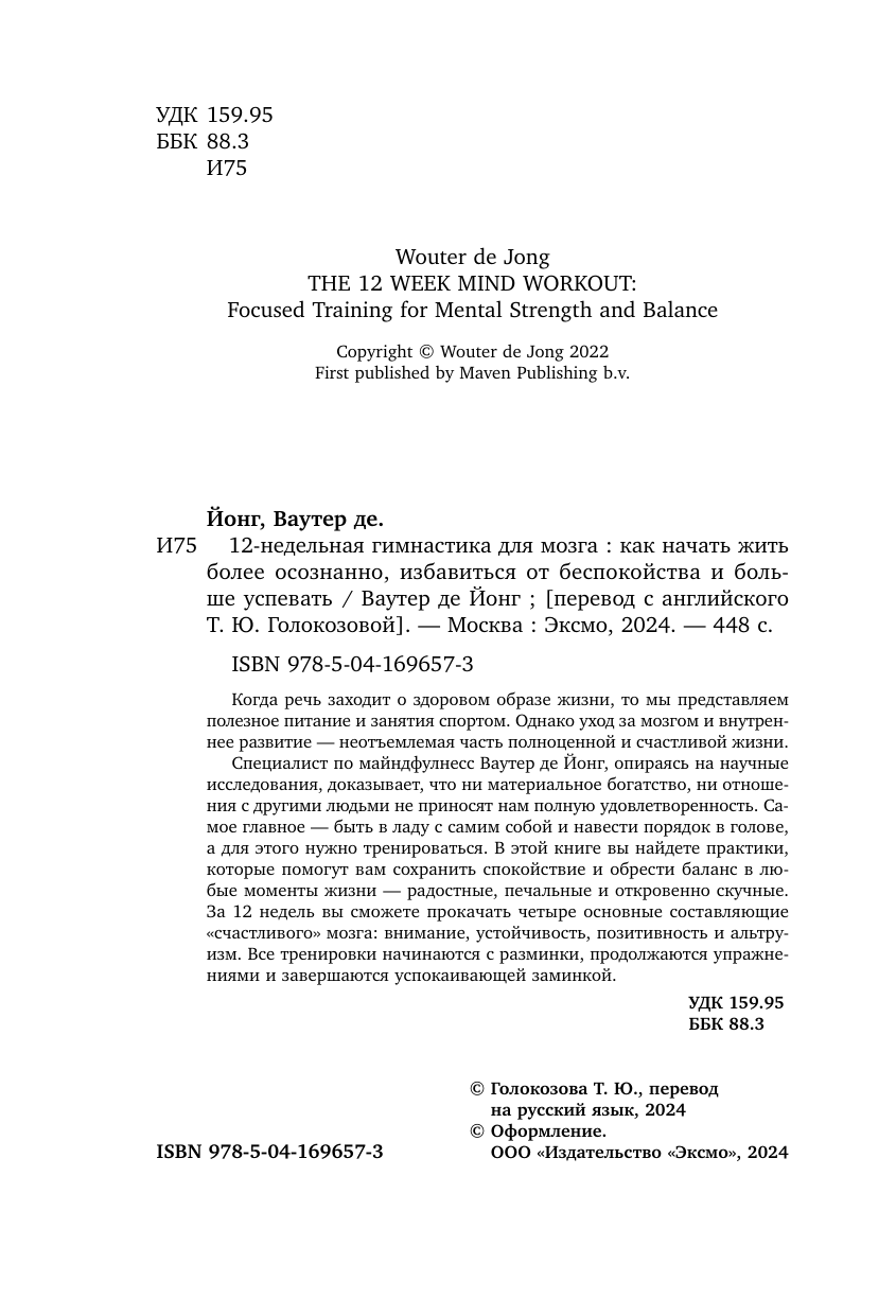 12-недельная гимнастика для мозга. Как начать жить более осознанно избавиться от беспокойства и больше успевать (Ваутер де Йонг); Эксмо, БОМБОРА, 2024