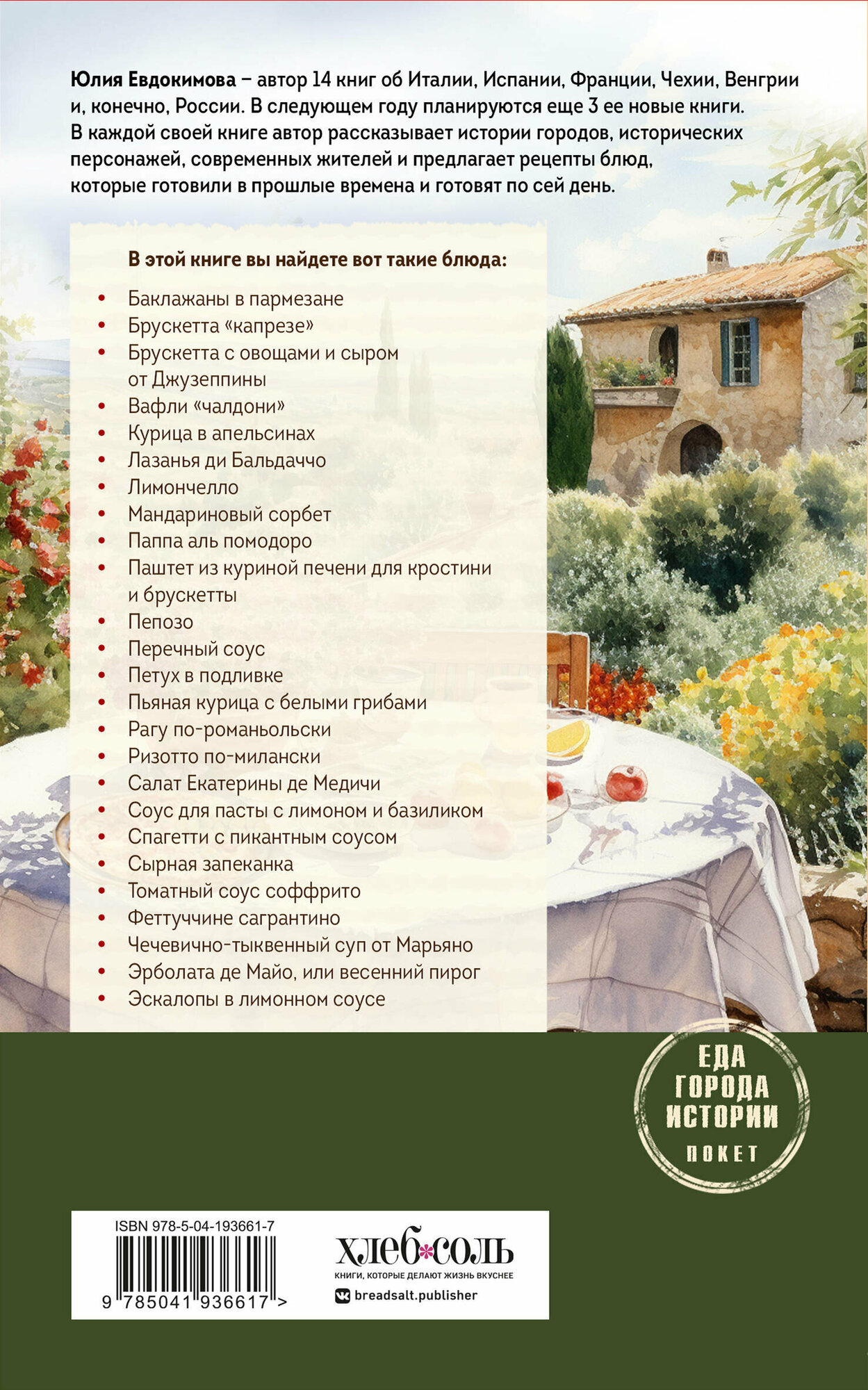 Об этой книге писали тосканские газеты, ее покупали во многих странах мира. Она несколько раз переиздавалась в твердом переплете. Теперь издана в покете — более компактном и доступном исполнении. Истории, легенды, дома и улицы городов, люди прошлых лет и настоящего времени, рецепты аутентичных блюд, которые готовила автор на своей кухне.