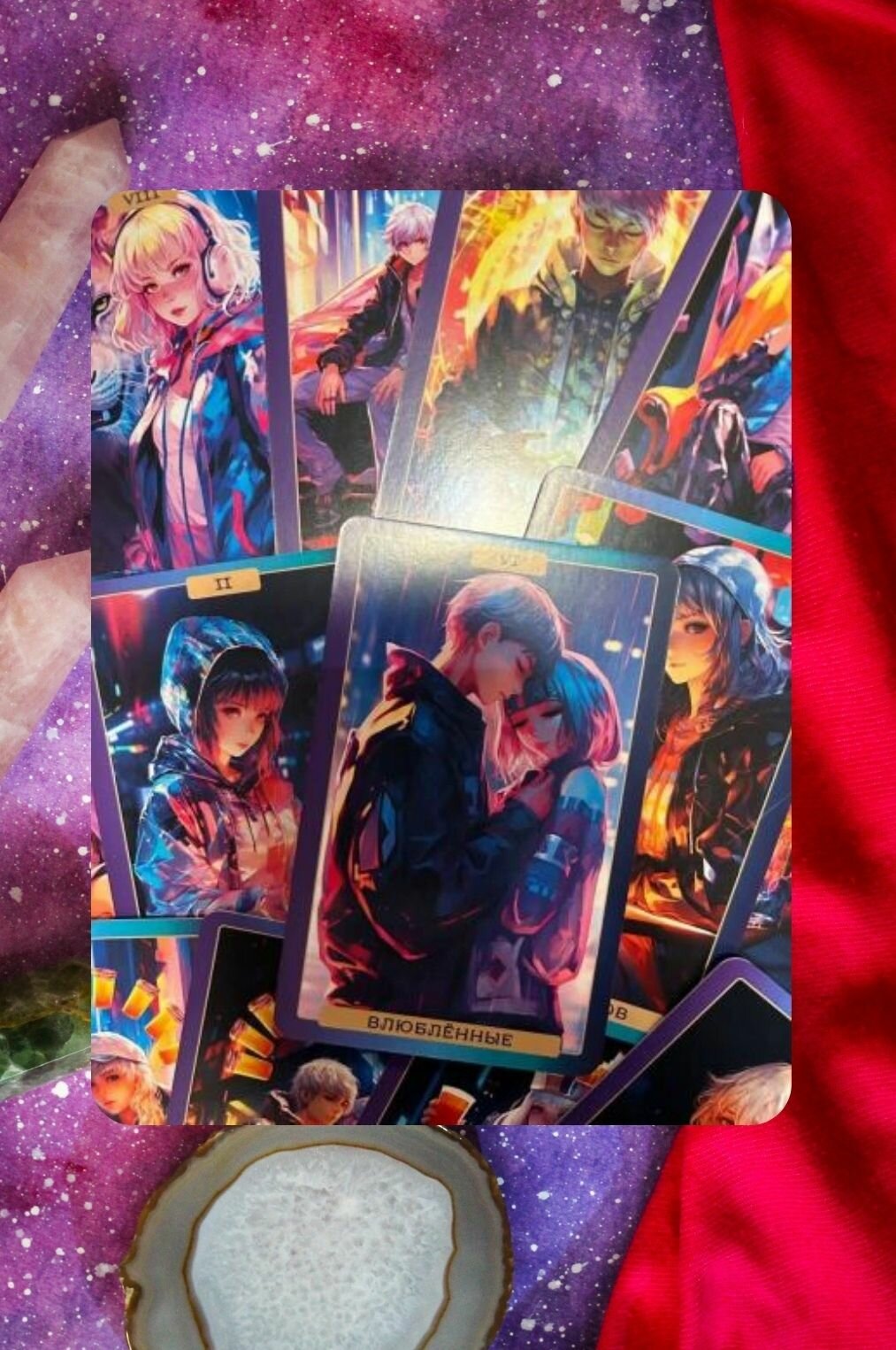 Эта колода таро создана для тех, кто любит аниме. Она нарисована художником при помощи нейросети, отвечает всем основным канонам гадательной системы таро и идеально подходит для первого знакомства с миром таро и гаданий. Герои аниме неонового города станут проводниками в волшебный мир таро и помогут т найти ответы на твои самые сокровенные вопросы. В брошюре даны все описания карт и их значения при раскладе в разных положениях.