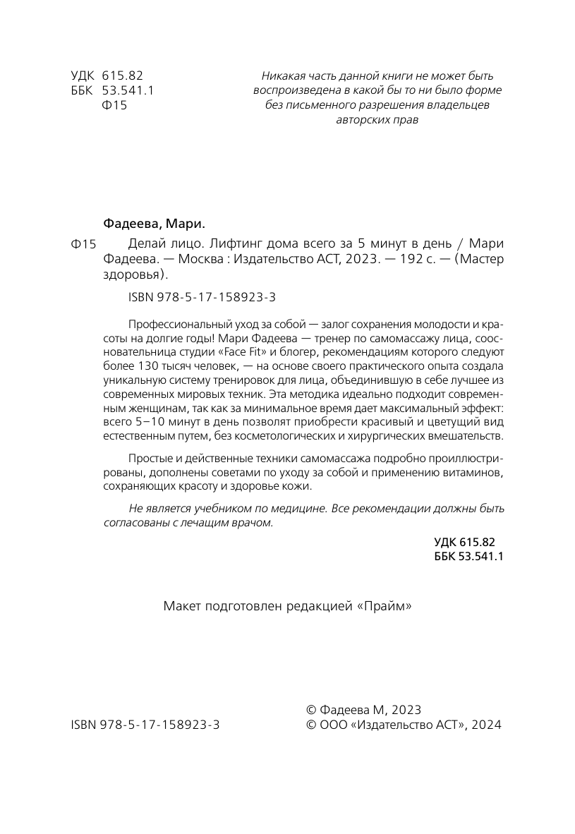 Делай лицо. Лифтинг дома всего за 5 минут в день (Мария Фадеева); Издательство АСТ, 2023