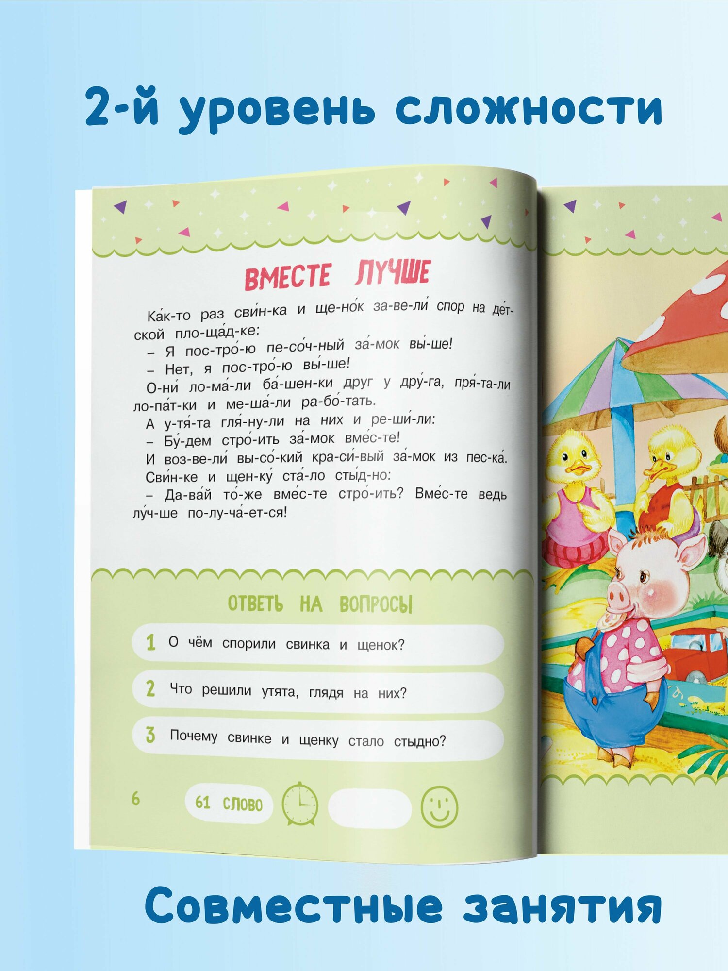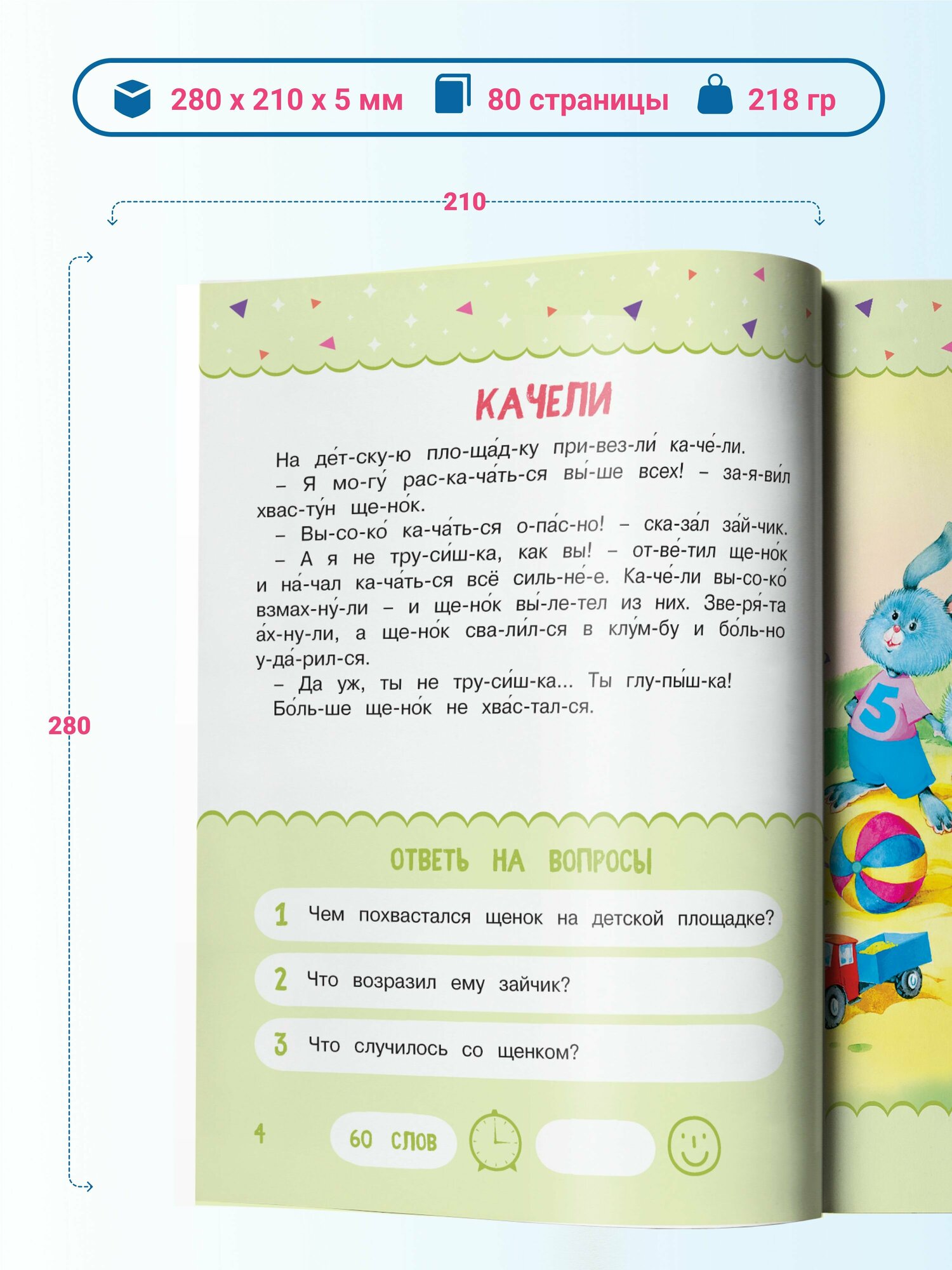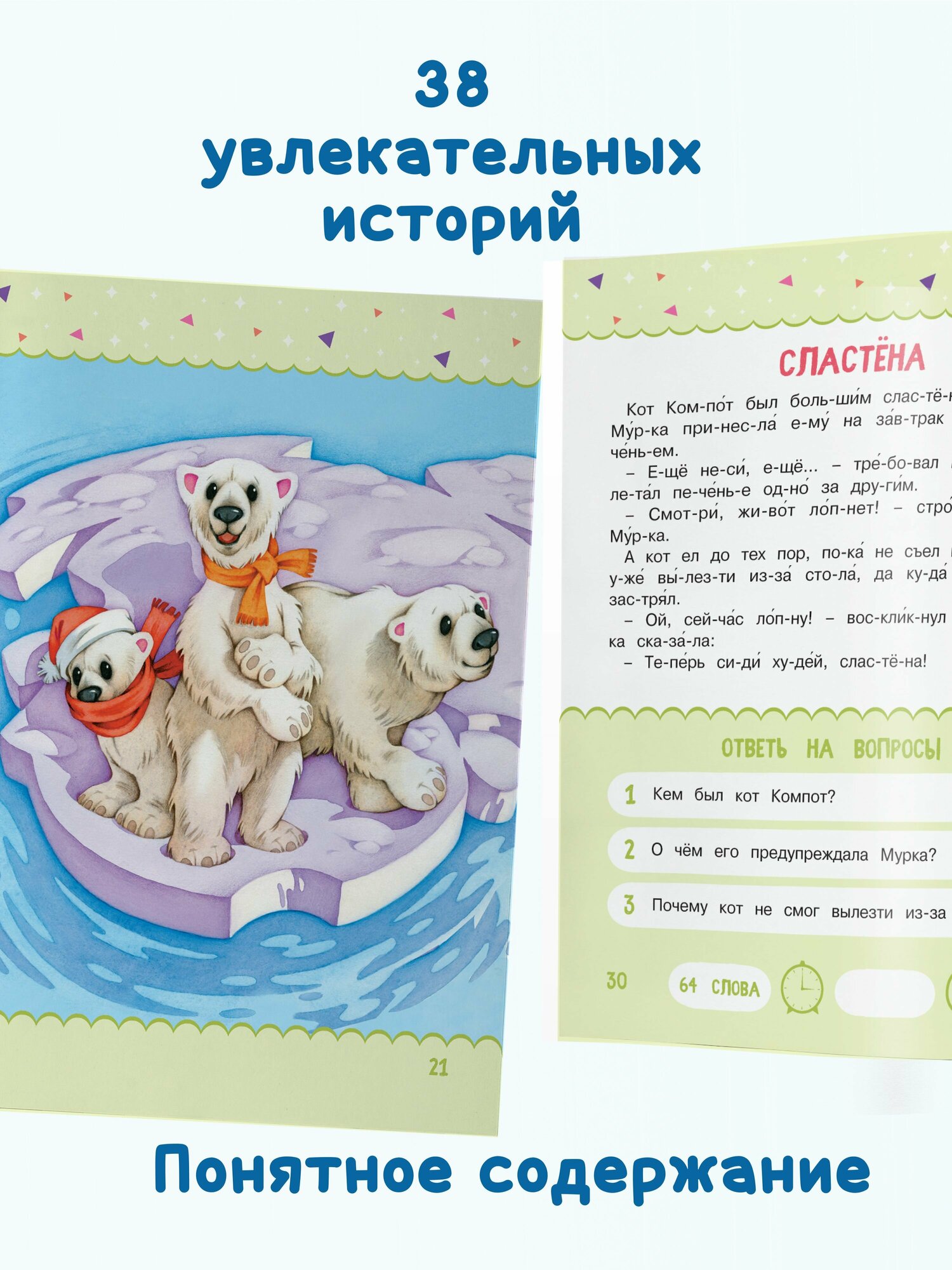 Небольшие поучительные рассказы с интересными историями и яркие иллюстрации сделают процесс обучения ребенка чтению по-настоящему увлекательным. В каждом рассказе не более 70 слов. Все слова в книгах серии «Тренажер для чтения» разбиты на слоги для более легкого освоения навыка чтения. В них также расставлены ударения в соответствии с литературной нормой.