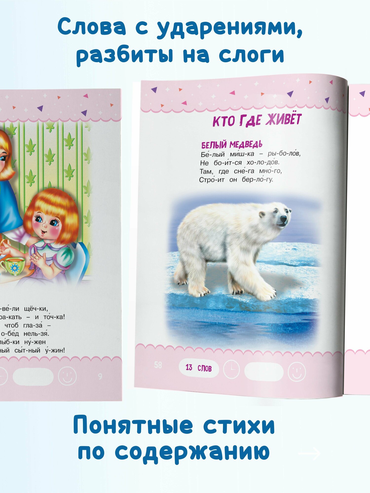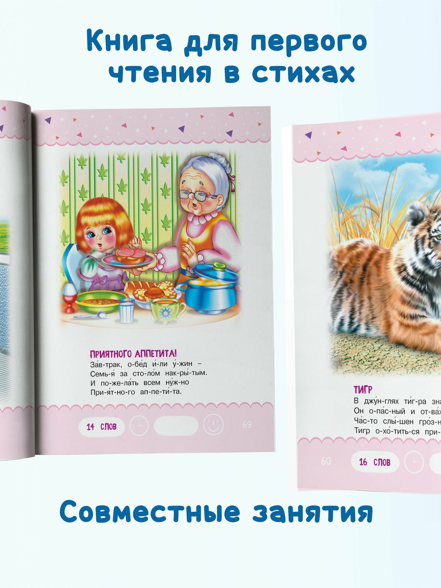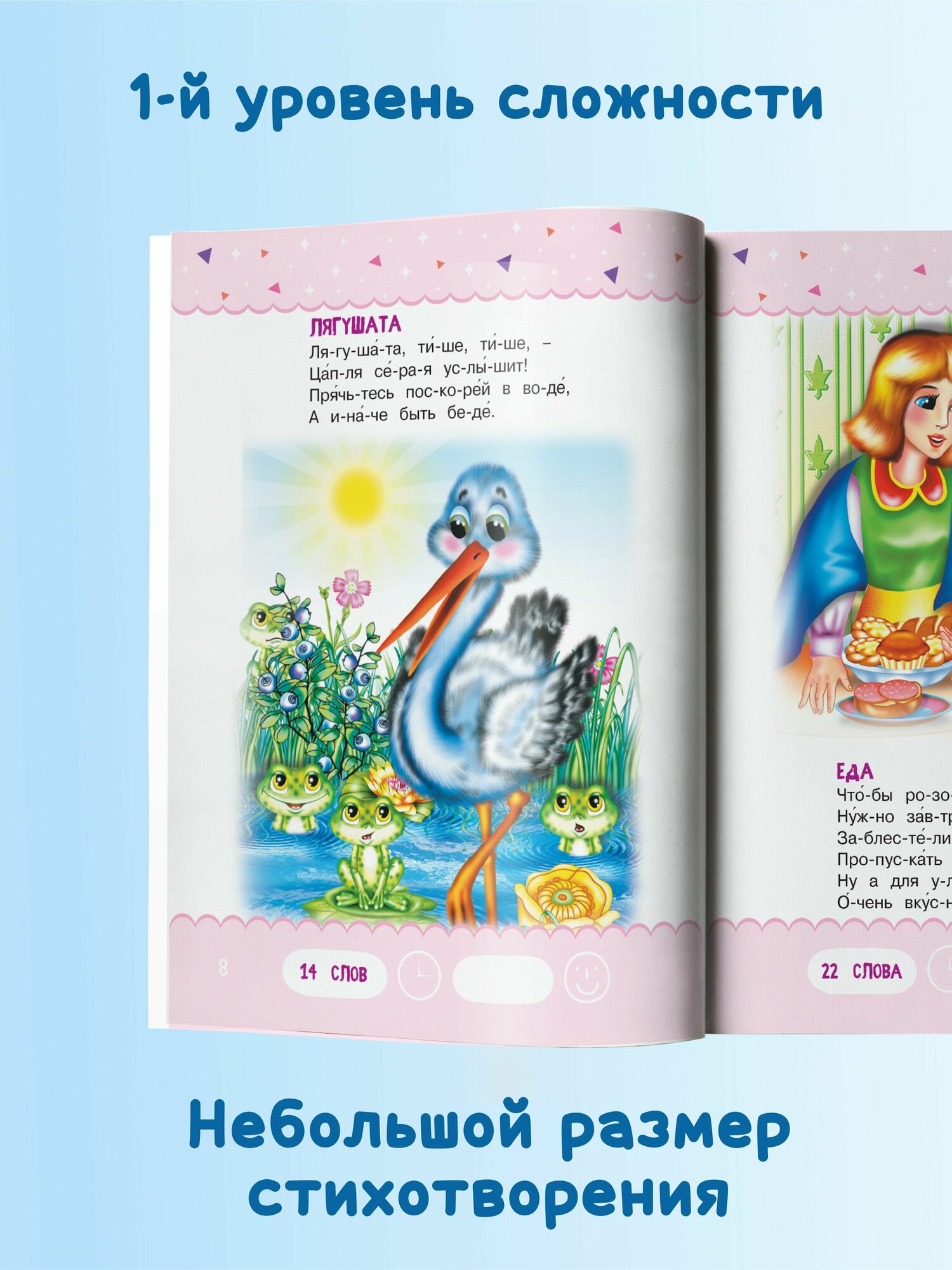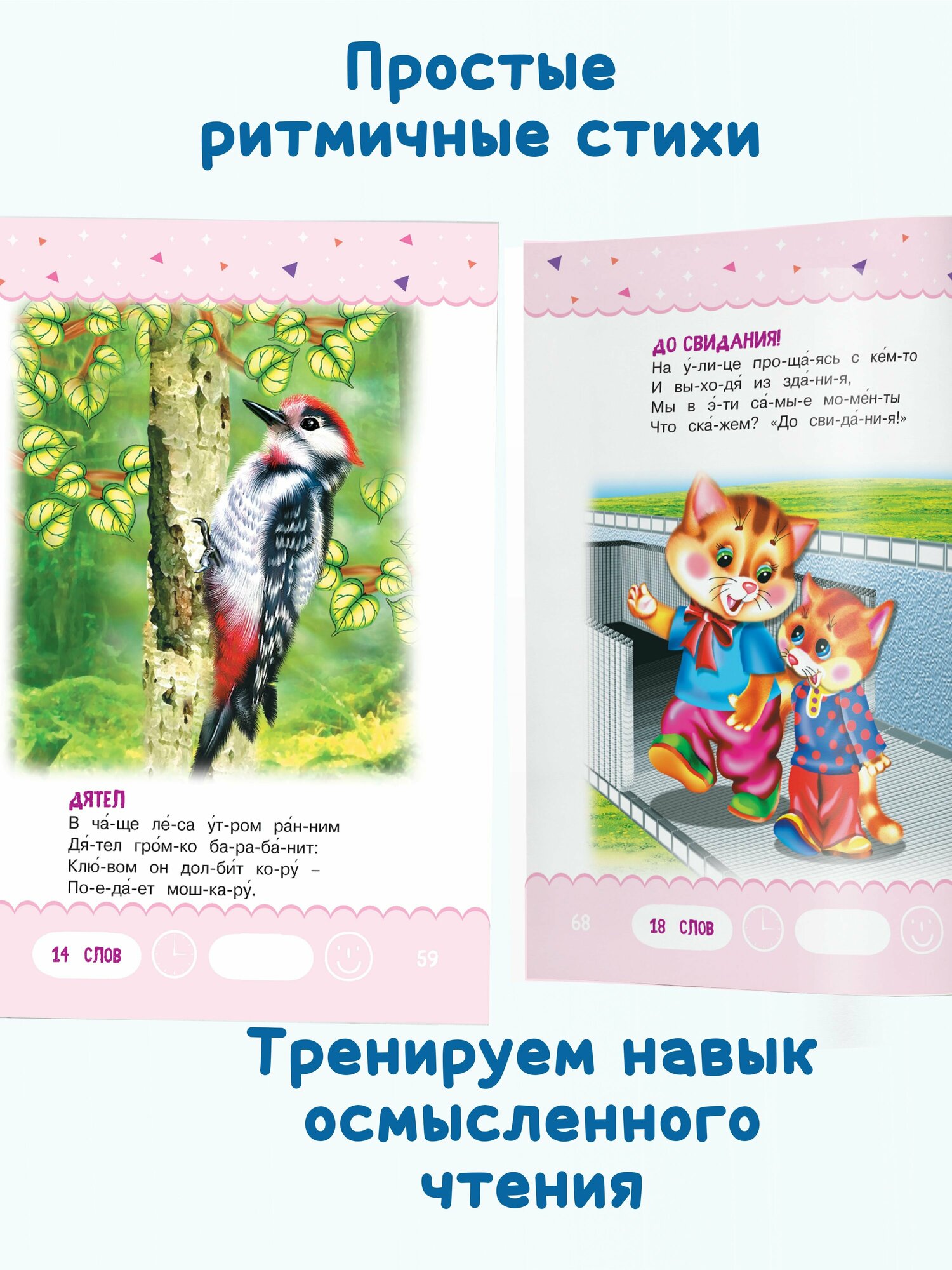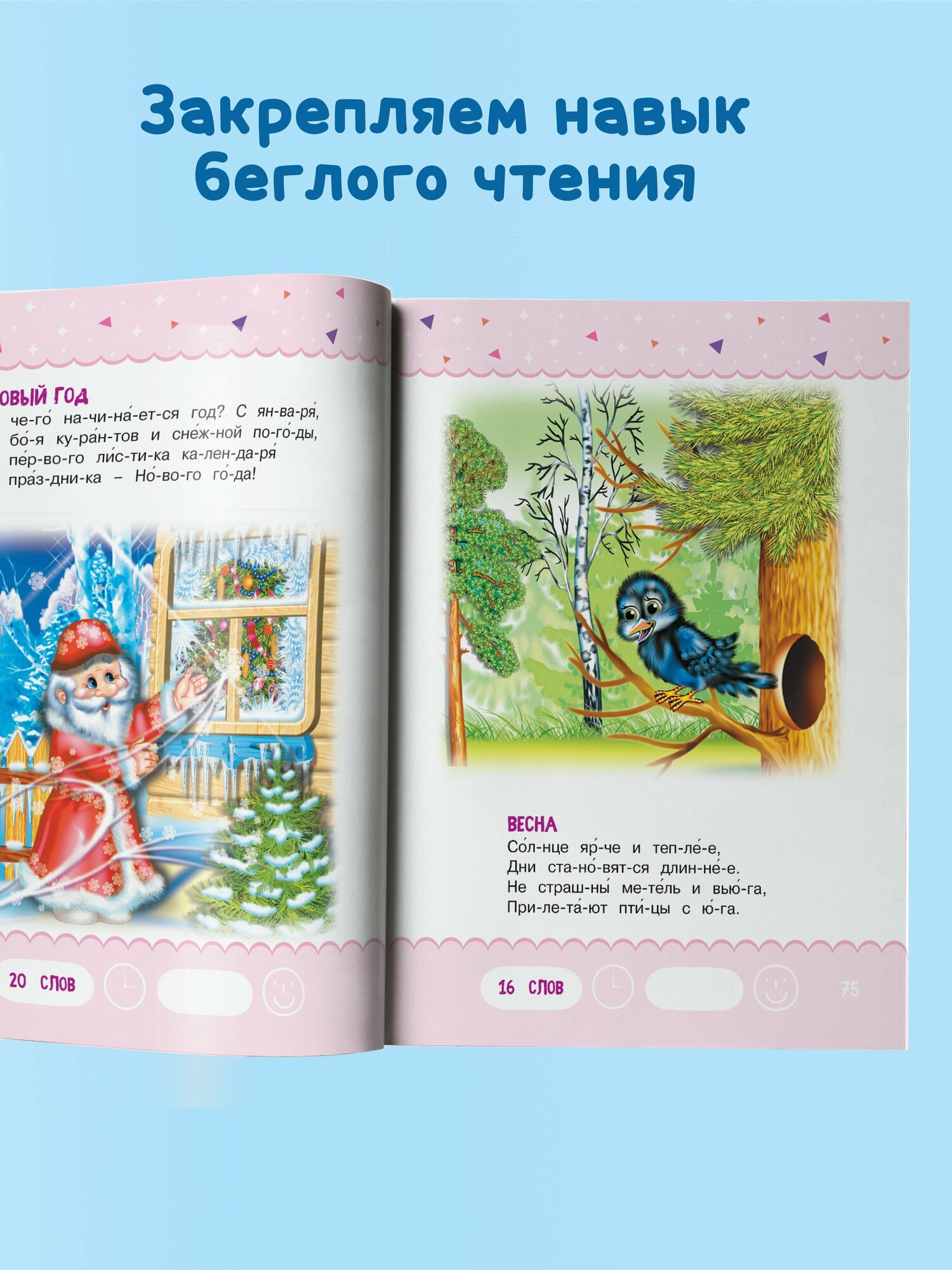 и прочитать, понравятся малышам. В каждом стишке не более 40 слов. Все слова в книгах серии «Тренажер для чтения» разбиты на слоги для более легкого освоения навыка чтения. В них также расставлены ударения в соответствии с литературной нормой. Яркие иллюстрации сделают процесс чтения еще более увлекательным.