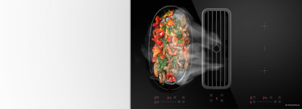 Варочная панель с интегрированной вытяжкой MAUNFELD - это идеальное решение для тех, кто ценит функциональность и эстетику. Она сочетает в себе индукционную технологию нагрева, четыре независимые варочные зоны на закалённом стекле чёрного цвета, мощную зону вытяжки в центре и элегантный дизайн. Преимущества товара: 1. Индикация остаточного тепла поможет избежать случайных ожогов. 2. Функция Bridge позволит объединять две варочные зоны в одну для большего удобства при приготовлении. 3. Девять ступеней нагрева обеспечат необходимую интенсивность кипения. 4. Встроенный вытяжной вентилятор моментально очищает воздух от паров, дыма и неприятных запахов. 5. Функция Booster позволит увеличить мощность нагрева на 40-50%. 6. Простая система монтажа позволит установить панель самостоятельно. 7. Блокировка от детей защитит технику от случайного включения или изменения параметров работы. 8. Индикация наличия посуды активирует конфорку, отвечающую за активную зону нагрева, только в том случае, если на поверхности посуды есть ферромагнитные свойства. 9. Функция автоматического отключения остановит работу панели, если пользователь в течение одной минуты не выберет нужный режим работы. 10. Пользовательский интерфейс позволит управлять панелью и вентиляционным модулем с помощью одного движения кончиком пальца. Варочная панель оснащена передовыми технологиями и инновационными функциями. Максимальная скорость подъема пара составляет один метр в секунду, благодаря чему пар отводится с поверхностей кастрюль и сковородок. Встроенный вентиляционный модуль эффективно защищает мебель и одежду от жира и запаха, а также создает мощный поперечный поток воздуха. Таймер с автоотключением и таймер вытяжки позволяют задать время приготовления и заниматься своими делами, пока блюдо готовится. Защита от неправильного подключения гарантирует безопасность использования панели и предотвращает возможные проблемы. Мотор вытяжки мощностью 135 Ватт работает с высокой производительностью 1050 кубометров в час и низким уровнем шума. Размер варочной панели 80,5 х 52 х 20,5 см, вес 14,2 кг. Конфорки диаметром 16 и 18 см. Панель выполнена из стеклокерамики, имеет сенсорное управление и работает от сети 220-240 Вольт. MAUNFELD - это известный бренд, который зарекомендовал себя как надежный производитель техники для кухни. Этот товар станет отличным выбором для тех, кто ищет высококачественную и функциональную варочную панель с интегрированной вытяжкой по доступной цене.