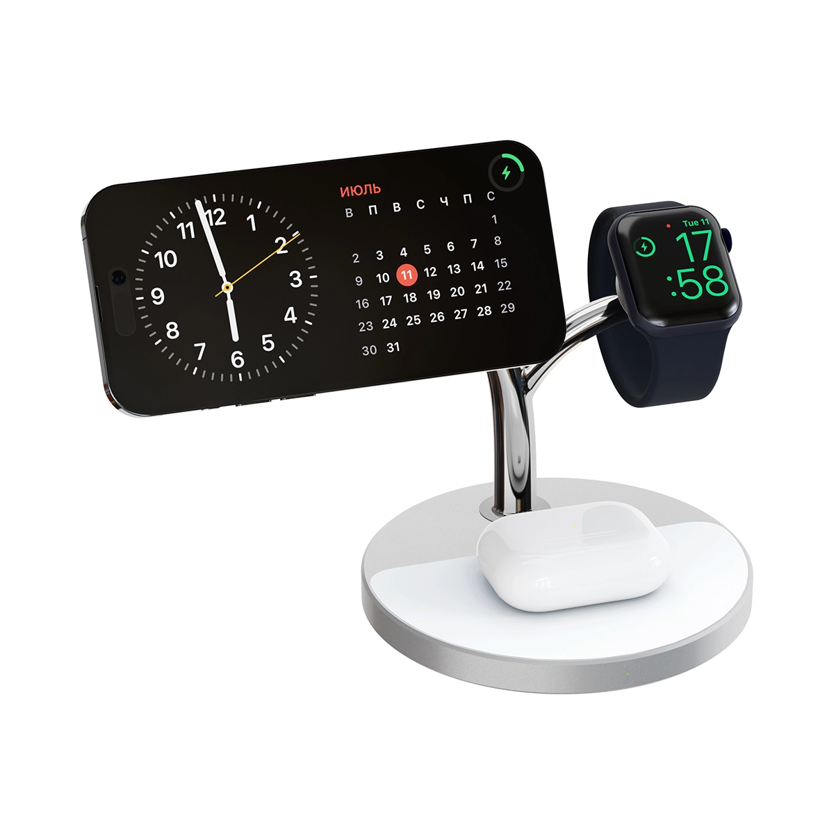 Беспроводное зарядное устройство 3 в 1 с магнитным креплением - идеальное решение для зарядки вашего iPhone, iWatch и AirPods в одном устройстве. Это компактное и стильное зарядное устройство обеспечивает быструю и удобную зарядку вашей электроники без необходимости использования проводов.