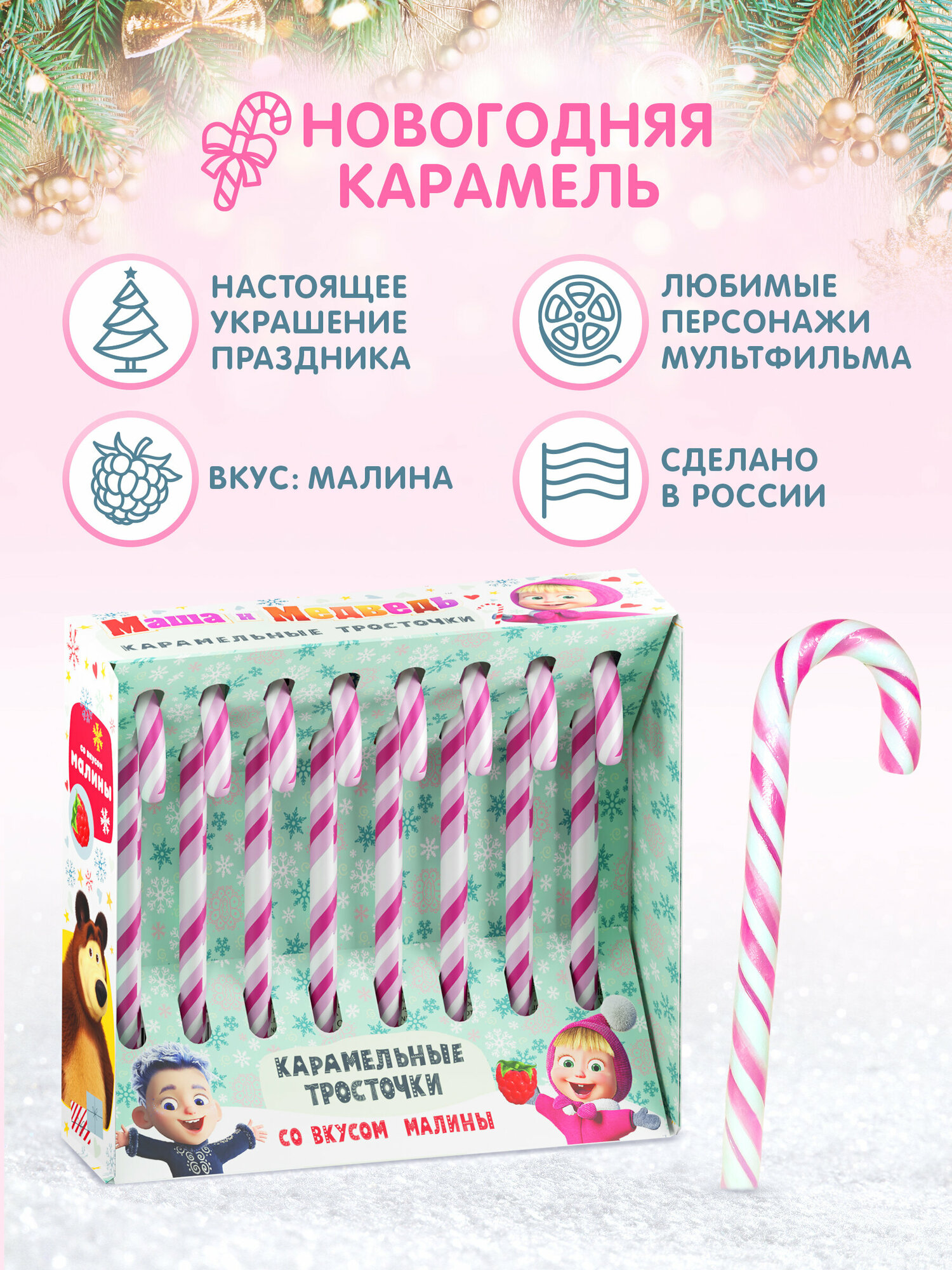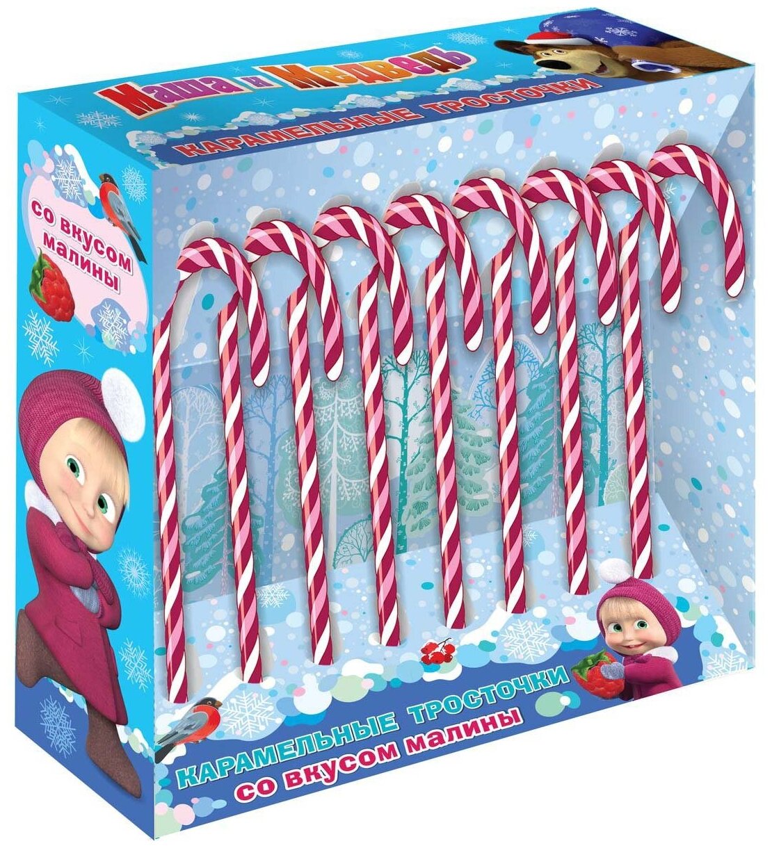Полосатые карамельные трости со вкусом малины в подарочной упаковке "Маша и Медведь" порадуют как малышей, так и взрослых поклонников мультсериала и тех, кто любит побаловать себя необычными сладостями. Малиновые трости производятся на российской фабрике с использованием натуральных ингредиентов.