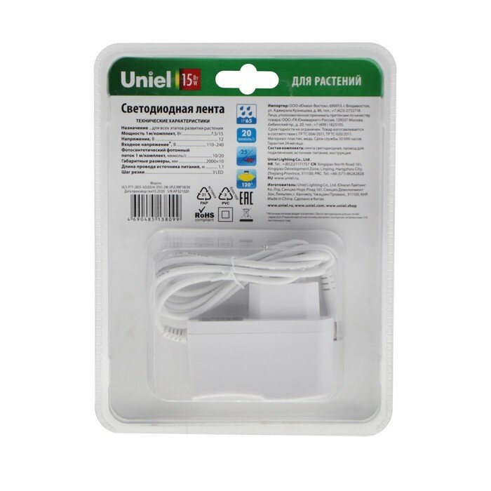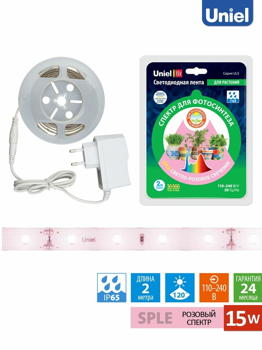 лента светодиодная UNIEL для растений LED 15Вт IP65 2м UL-00007572