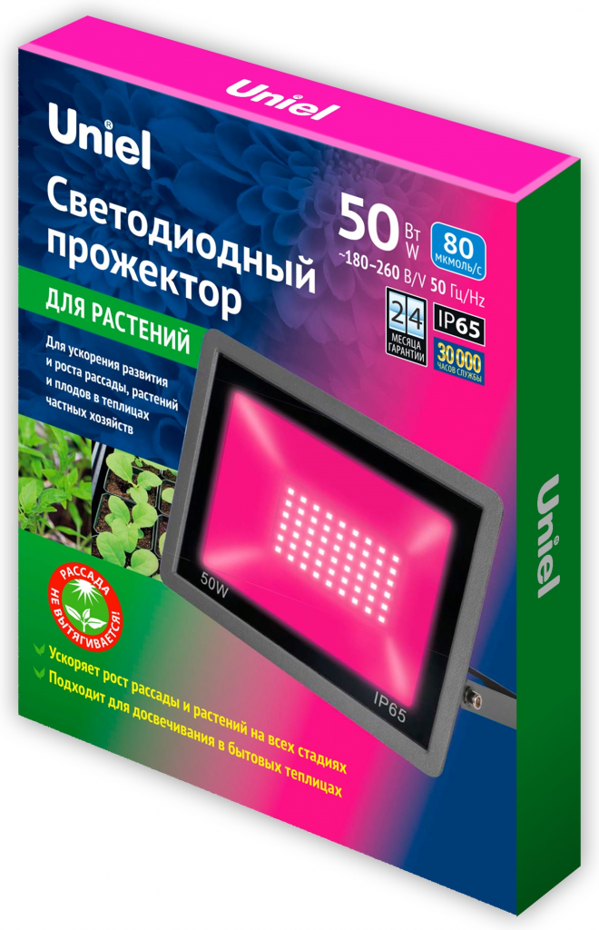 прожектор светодиодный UNIEL для растений LED 50Вт IP65 черный UL-00010384