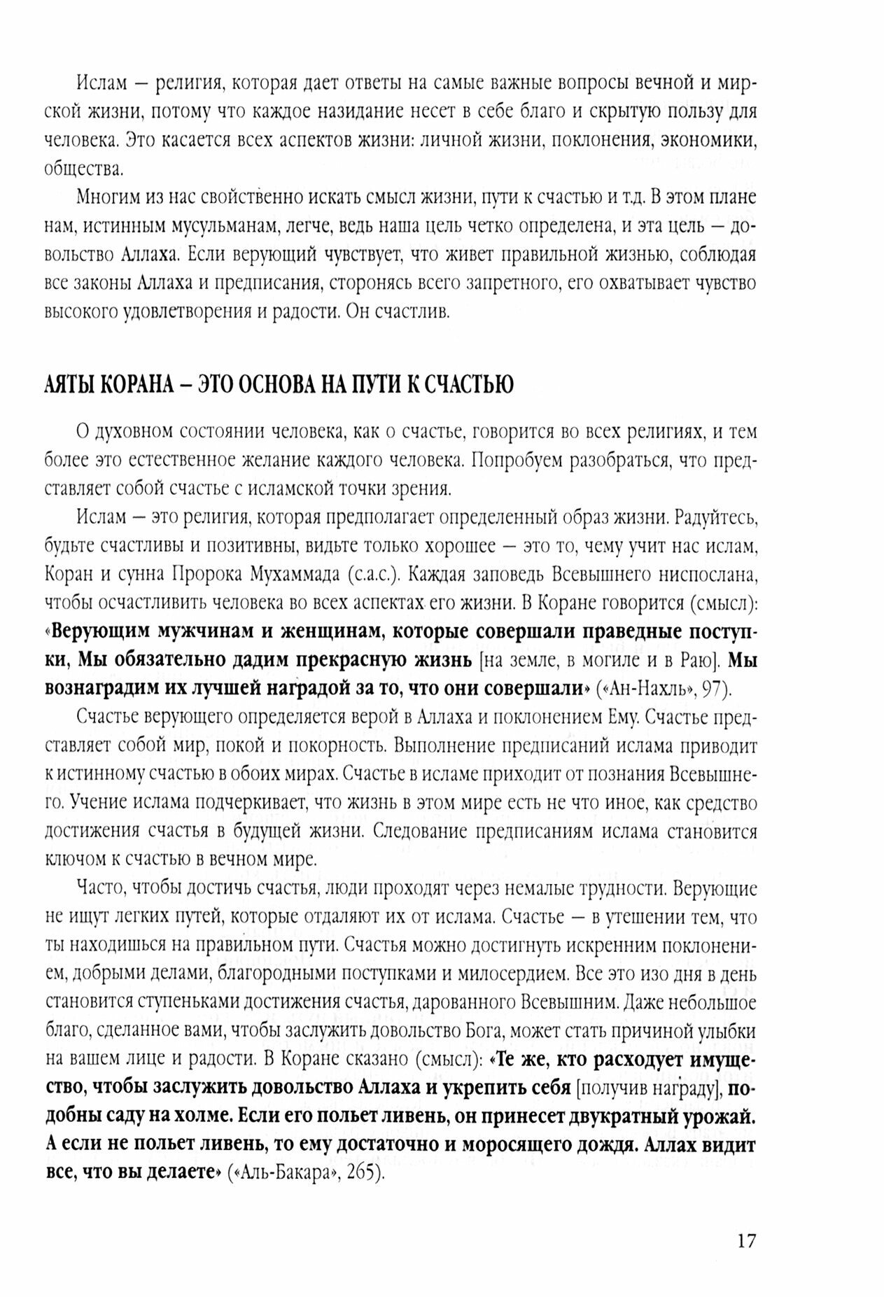 Книга посвящена величайшей и актуальной теме всех времен – счастье человека. Автор, определяя цель этой работы, использует свой огромный жизненный, семейный, научно-педагогический и теологический опыт деятельности на пути к счастью. Предпринимает попытку определить «счастье» в широком смысле с позиций Ислама и светского понимания с целью помочь другим в стремлении к счастливой жизни. Очевидно, что счастье – высочайшая цель каждого, но само понятие счастья и способы его достижения являются предметом дискуссий и расхождений в понимании людей. На наш взгляд определяющим здесь является умение полагаться на Всевышнего, управляя собой (самоуправление). И самым важным, на взгляд автора, на пути к счастью является искренняя вера человека во Всевышнего, а приводимые материалы из Корана и Сунны Посланника Мухаммада (с.а.с.) дают нам множество надёжных рекомендаций и проверенных временем простых рецептов счастливого благоденствия. Всей своей книгой профессор М.Б. Гамидуллаев стремится научить управлять собой всех желающих быть счастливыми и находящимися на пути к счастью; при этом автором разработаны схематичные формы основных способов и методов выявления пороков, даны практические рекомендации развития духовно-психологических и личностных качеств человека, направленных на благополучие и получение своего личного счастья. Весь систематизированный материал книги преисполнен надеждой, что каждый из вас сумеет воспользоваться практическими советами и рекомендациями наставника мудрости, тем самым умножая количество счастливых людей в мире. В книге есть аяты, хадисы, мудрые мысли, тесты самопроверки, также даются ответы на вопросы как стать счастливым не только в земной, но и в жизни вечной.