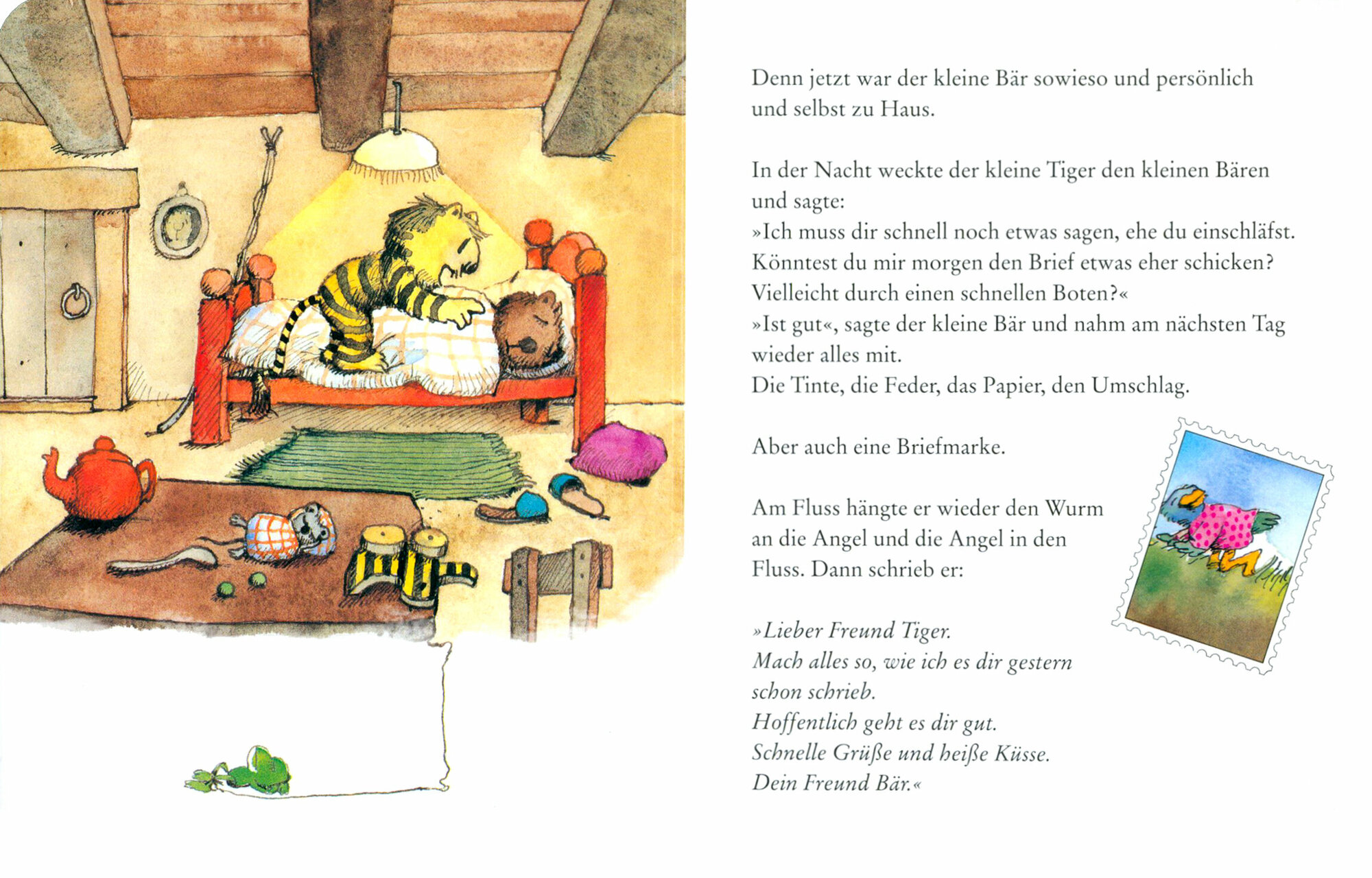 Alles begann mit einem Tiger, der Sehnsucht nach dem Baren hat. Deshalb bittet er den kleinen Baren: Du, schreib mir doch mal einen Brief! Gesagt, getan. Und wenig spater erfinden die beiden Freunde die Briefpost, die Luftpost und auch das Telefon mit unterirdischem Kabelanschluss. Ein Klassiker der Kinderliteratur, jetzt auch als Pappe fur Kinder ab 3 Jahren und in neuer, frischer Gestaltung.
