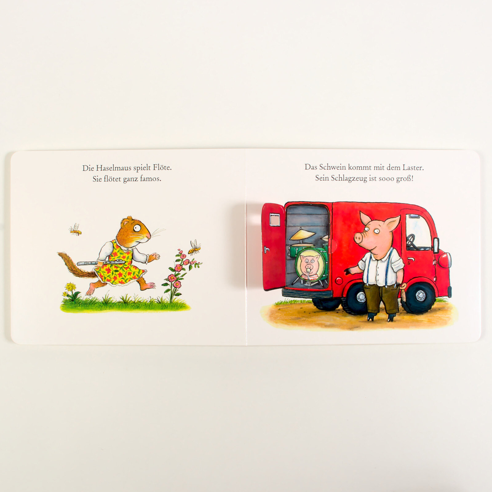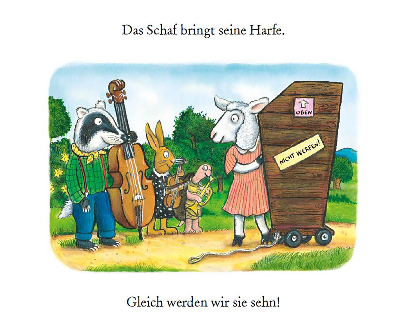 Der Dachs spielt super Kontrabass, sein Traum ist ein Orchester. Gibt es noch andere Tiere im Eichenwald, die mitspielen wollen?