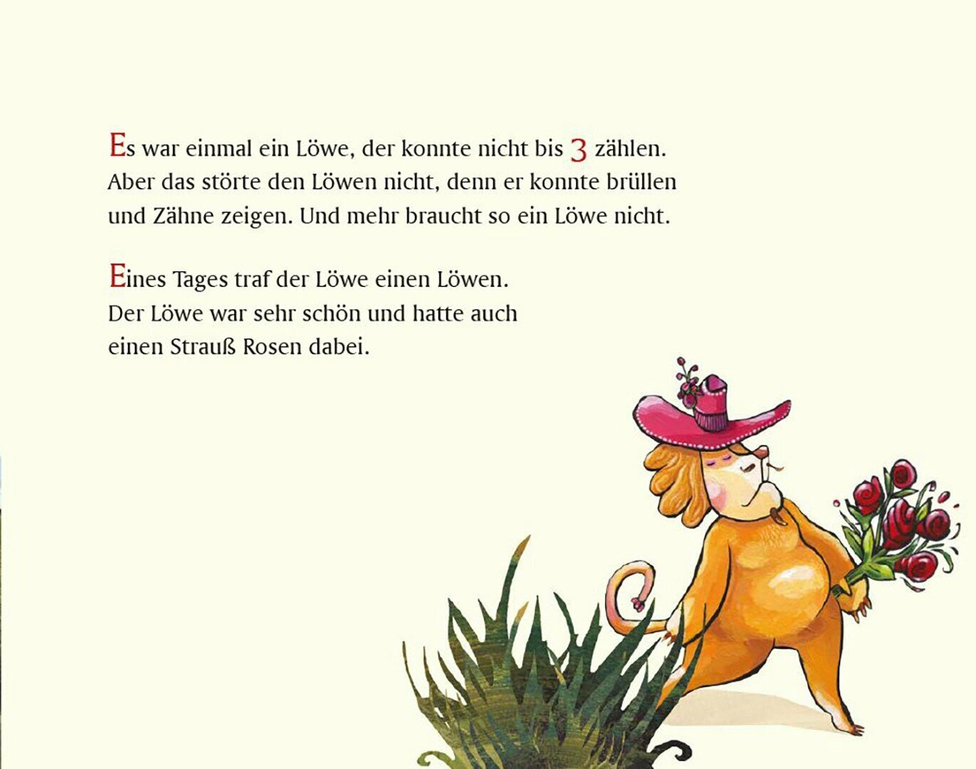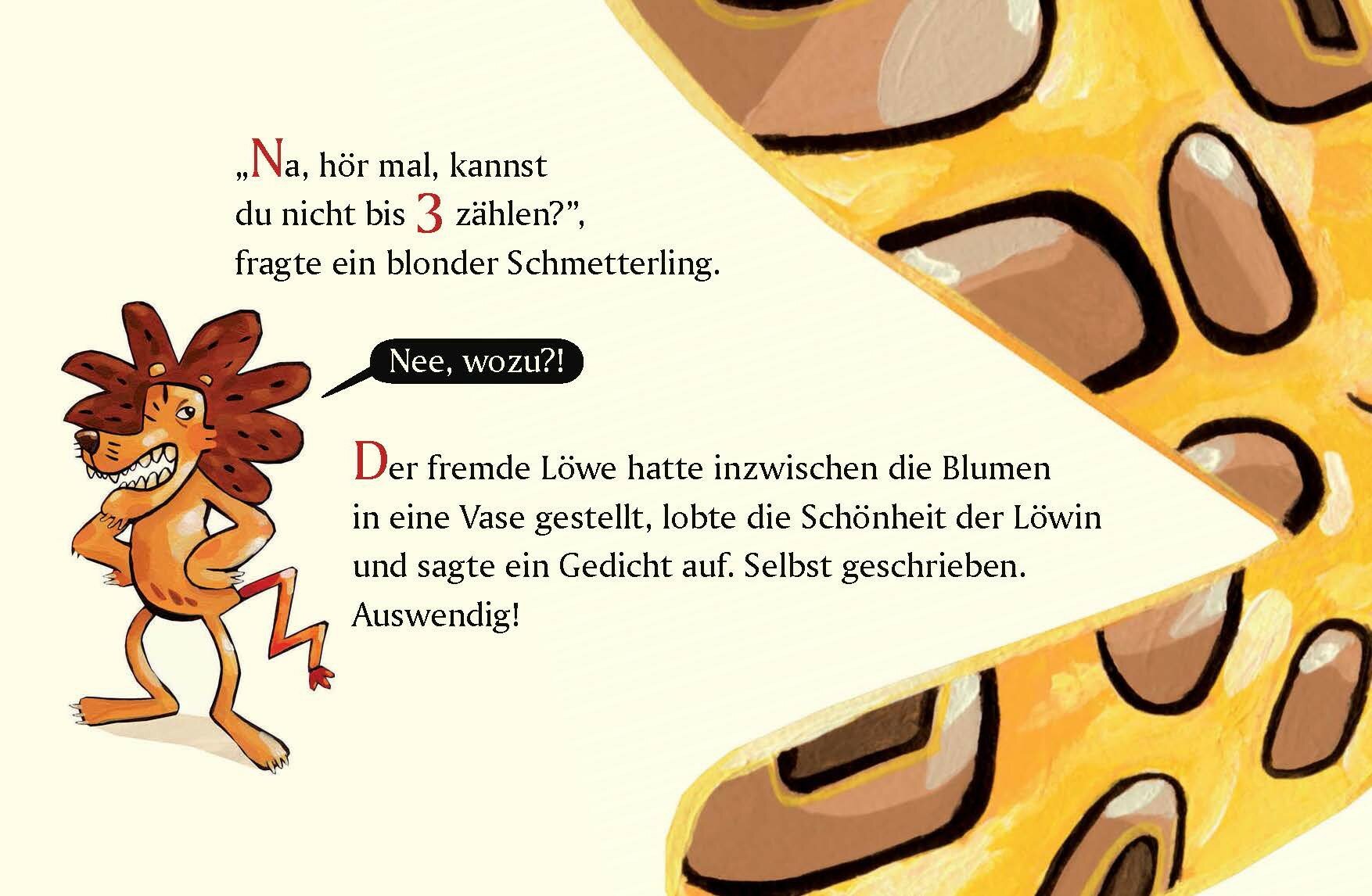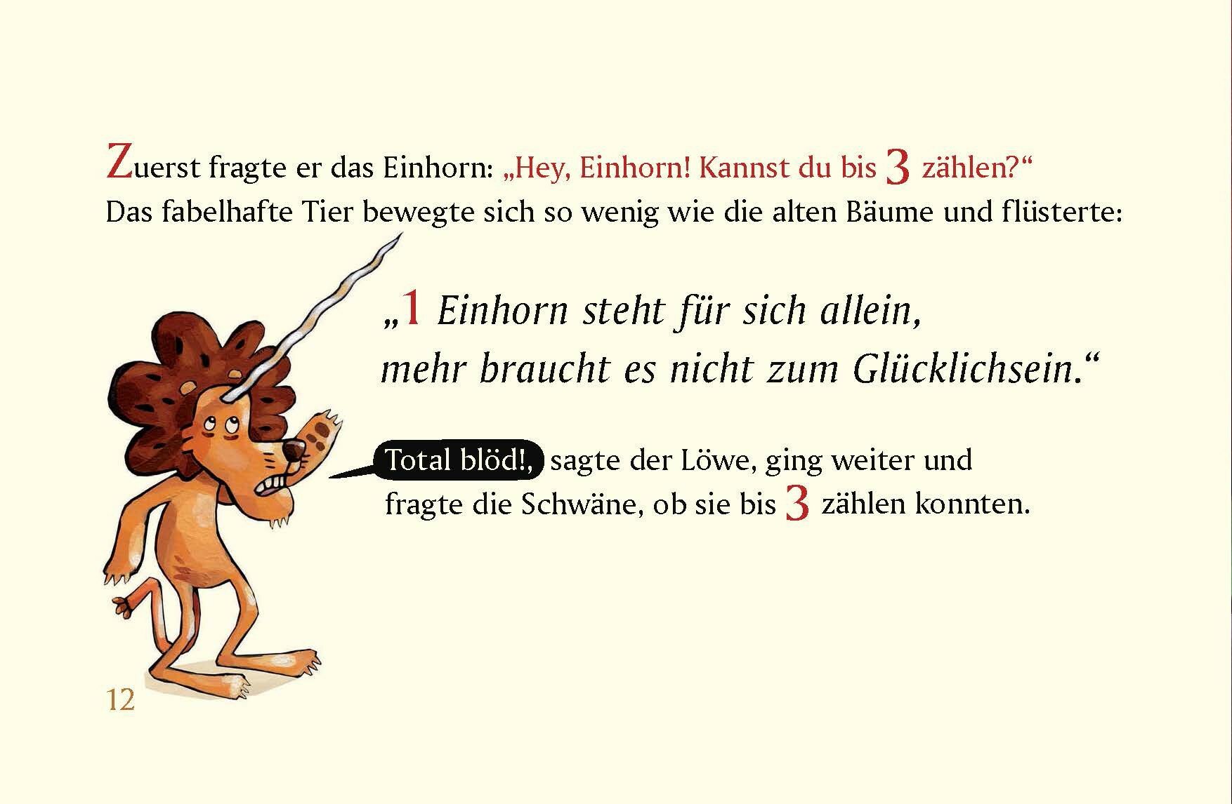 Der Lowe konnte nicht bis 3 zahlen, doch das storte den Lowen nicht, denn er konnte brullen und Zahne zeigen. Eines Tages aber traf er einen anderen Lowen. Der hatte 7 x 7 Rosen dabei und war auf dem Weg zur schonen Lowin ... Mit Mut, Witz und Zahlengeschick stellt sich der Lowe seinem Rivalen!