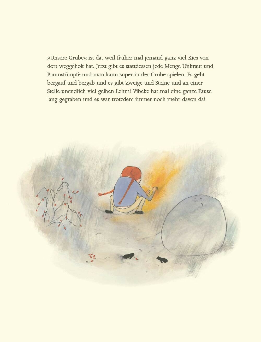 Es gibt keinen schoneren Platz zum Spielen als die gro?e Grube. Da kann man alles spielen: Barenmama, Einkaufen, Fangen, Verstecken - alles. Doch die Erwachsenen finden die Grube »gefahrlich« und lassen sie zuschutten. Die Kinder sind stinksauer. Sie haben ihre eigenen Vorstellungen, was ihnen Spa? macht. Wie ernst es ihnen ist, sich ihren Spielplatz zuruckzuerobern, ist einfach gro?artig.