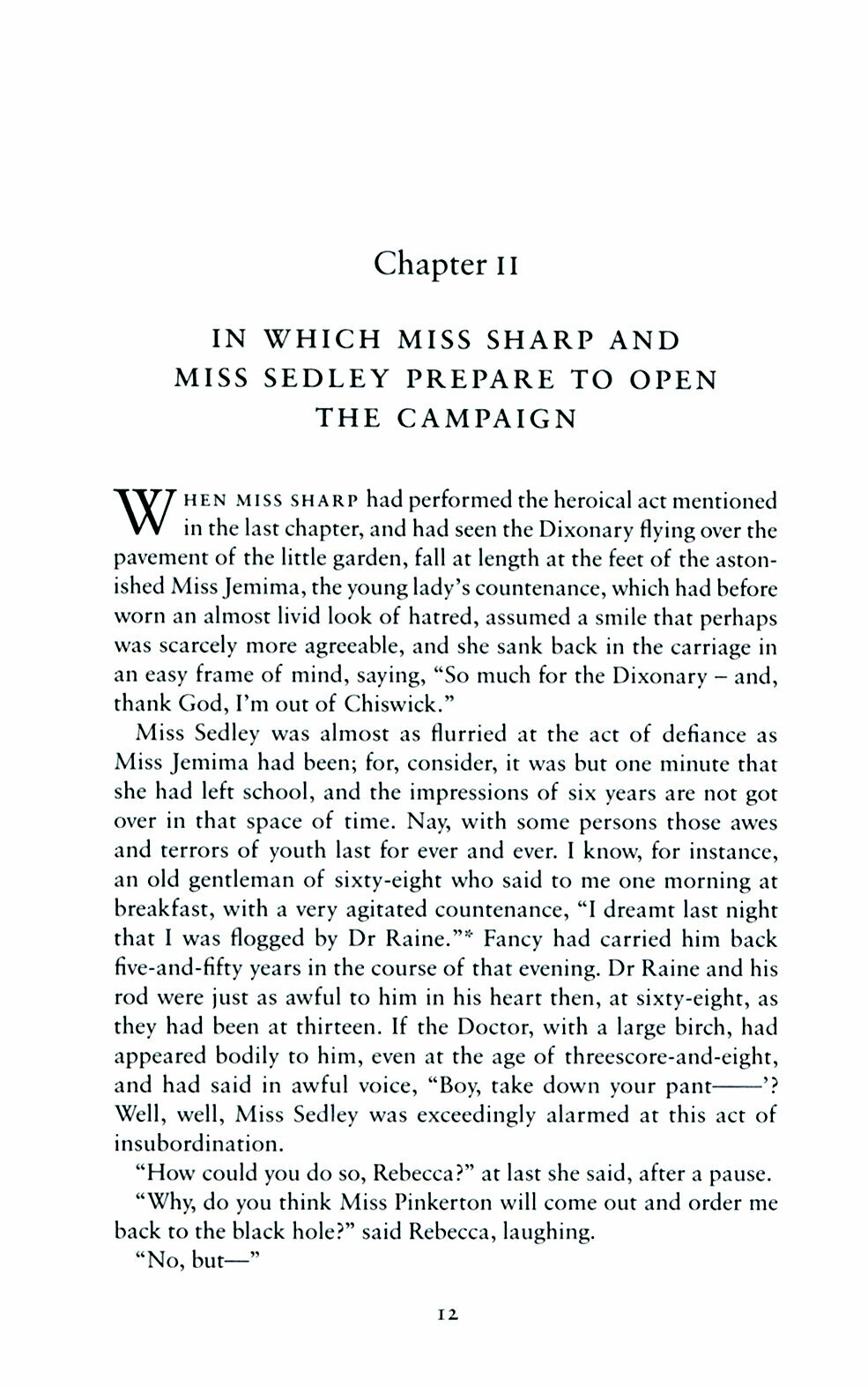 The friends Becky Sharp and Amelia Sedley leave Miss Pinkerton’s school together, ready to forge their paths in the tawdry and cut-throat world of the early nineteenth century. The scheming, brilliant and ruthless orphan Becky is better equipped than any to scale the heights of Regency society. Amelia, however, is sweet, quiet and passive, and longs for nothing more than the love of the self-obsessed and raffish soldier George Osborne. Amidst the machinations and jostling for wealth and status, Captain William Dobbin, with his hidden love for Amelia, stands alone as a steadfast, selfless and dutiful man.