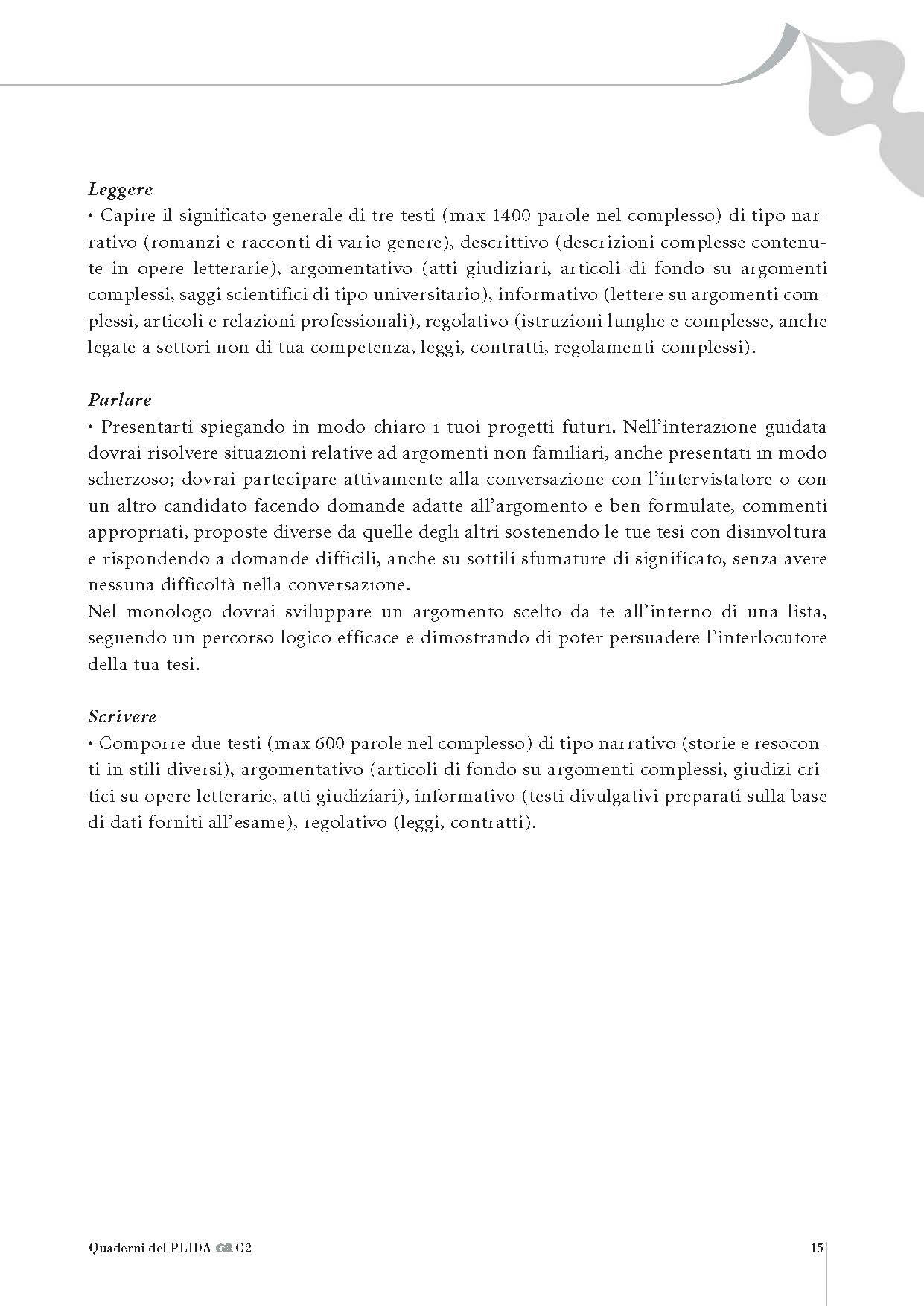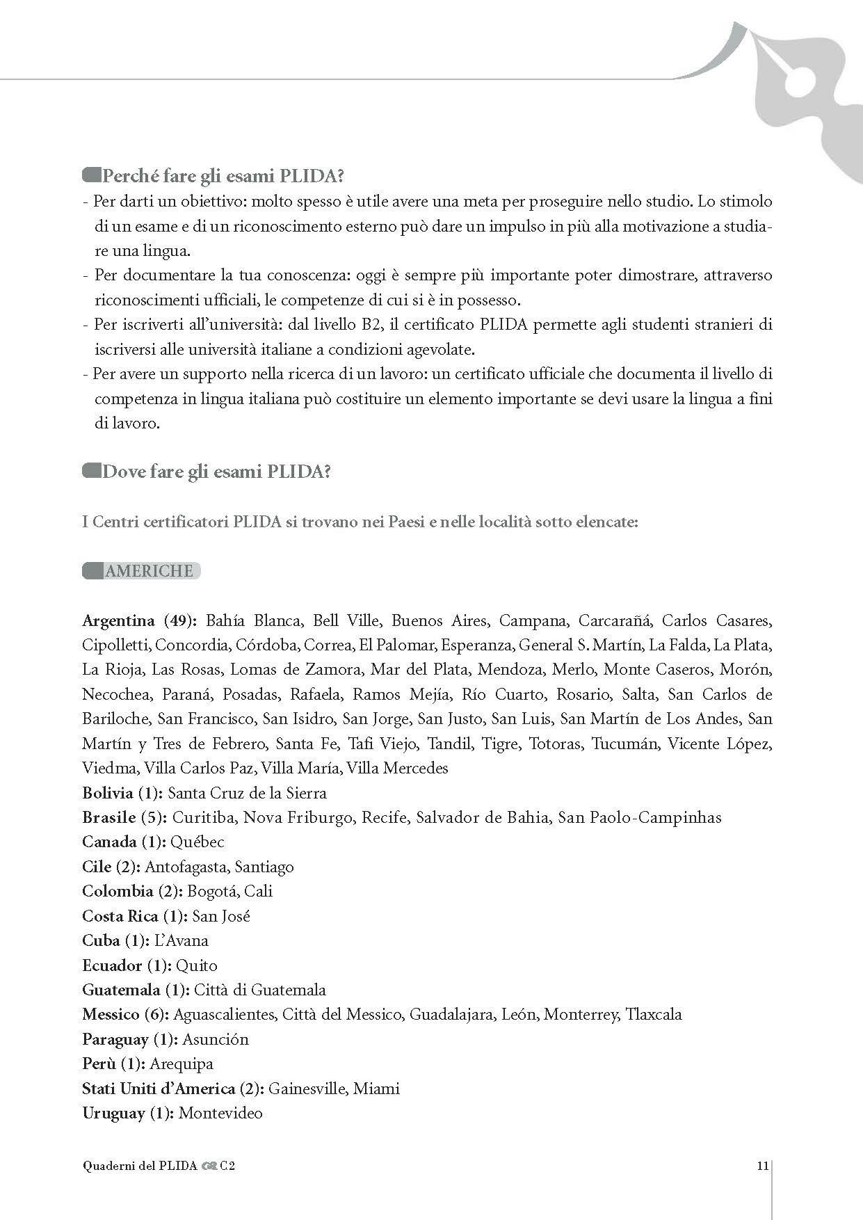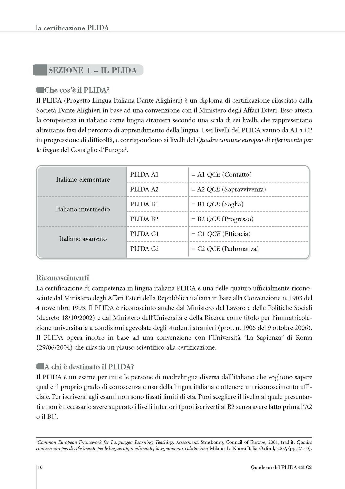 I Quaderni del PLIDA sono declinati in 6 volumi, uno per ognuno dei livelli in cui e articolata la certificazione PLIDA (A1 - A2 - B1 - B2 - C1 - C2), uno strumento semplice, pratico e affidabile a disposizione di chiunque voglia cimentarsi in una prova d’esame PLIDA o semplicemente esercitarsi con il proprio italiano.