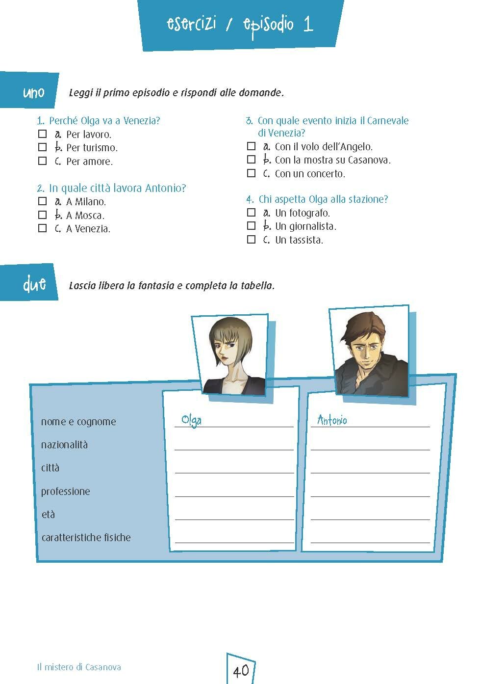 Ogni storia e accompagnata da un’ampia gamma di attivita didattiche, che permettono di comprendere meglio la lingua usata nel racconto e di esercitare il lessico e la grammatica.