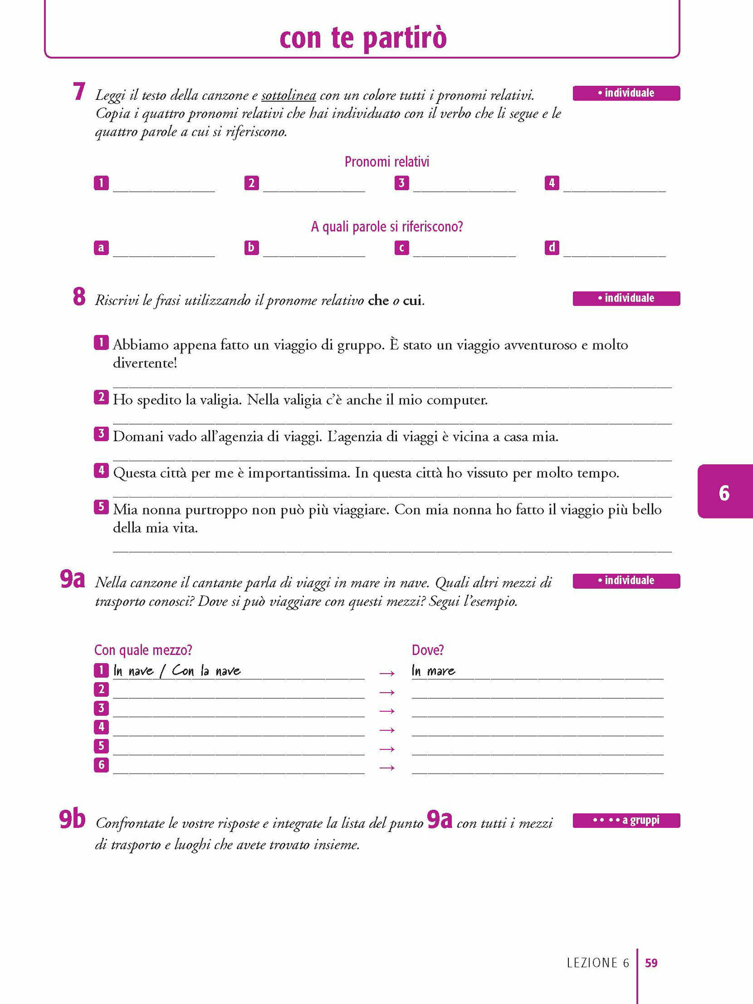 Ogni lezione propone un percorso di approfondimento sulla canzone e curiosita sugli interpreti, attraverso un’ampia gamma di attivita per la classe, giochi, grammatica ed esercizi.