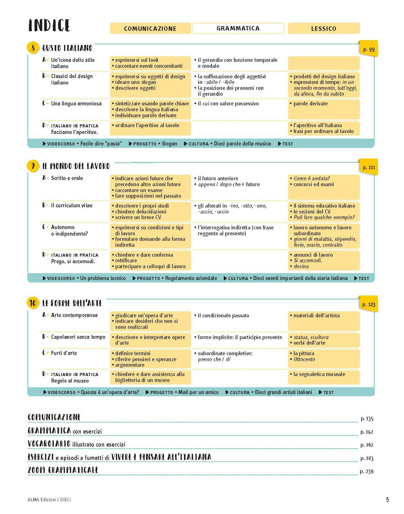 Include anche un VIDEOCORSO in 10 episodi, una GRAMMATICA, un VOCABOLARIO ILLUSTRATO, un ESERCIZIARIO e gli episodi a fumetti di "VIVERE E PENSARE ALL'ITALIANA".