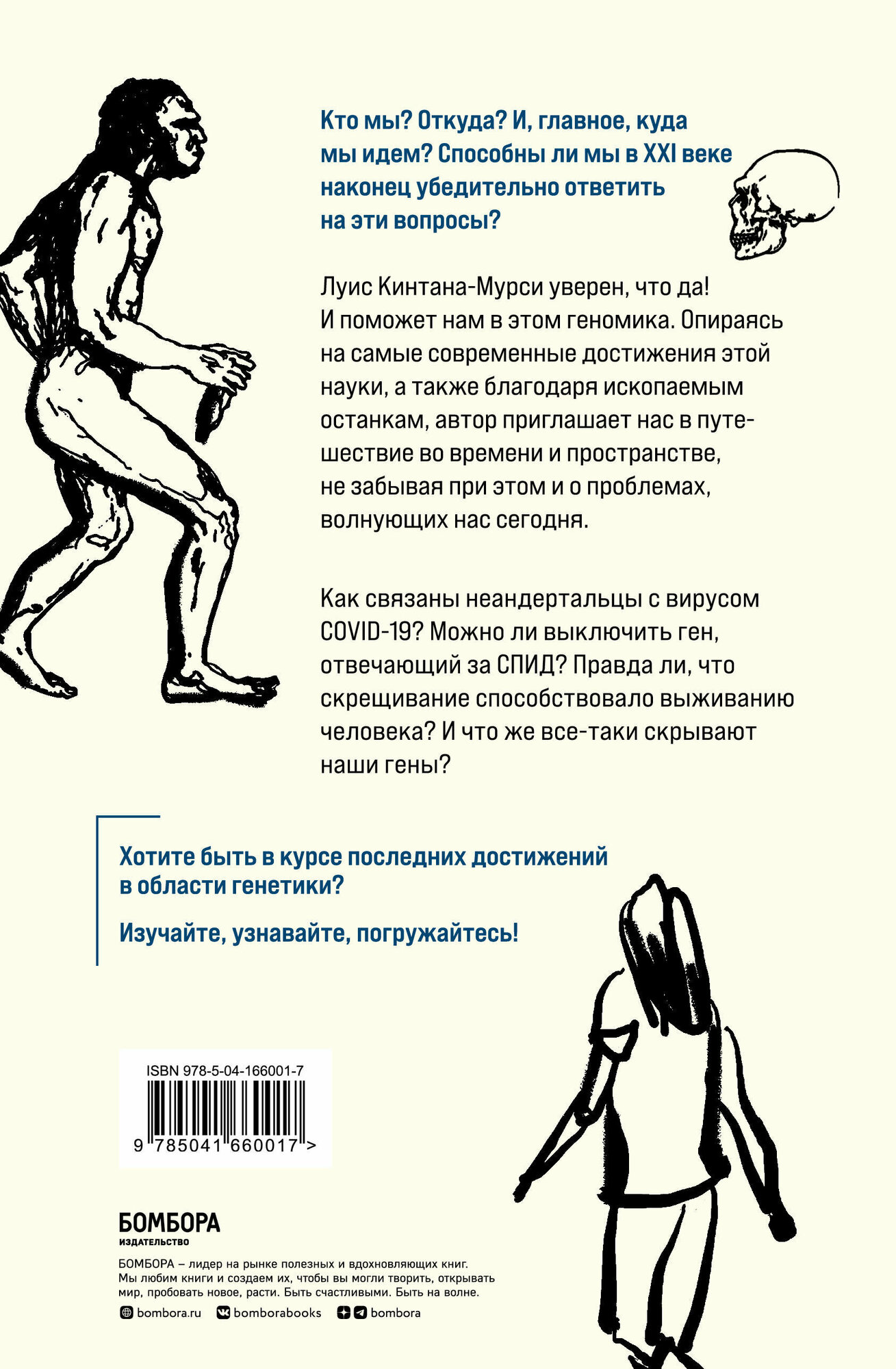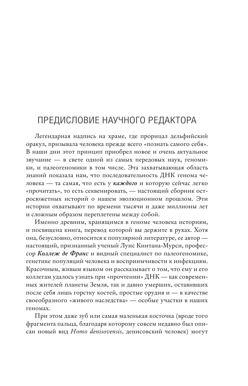 Как связаны неандертальцы с вирусом COVID-19? Можно ли выключить ген, отвечающий за СПИД? Отвечая на эти и другие злободневные вопросы, Луис Кинтана-Мурси привлекает актуальные генетические исследования, анализирует наше прошлое и предлагает задуматься о будущем.