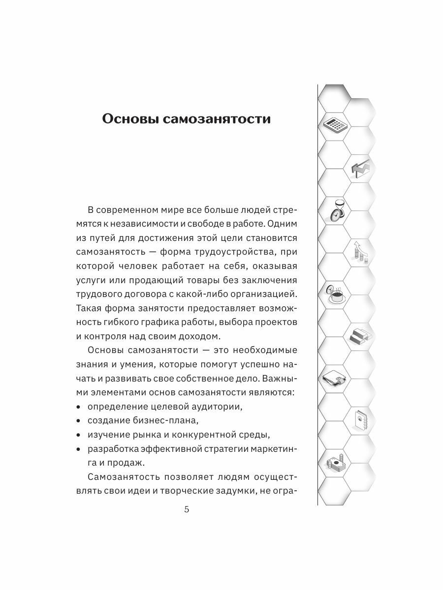 Данная книга представляет собой исчерпывающее руководство для всех, кто хочет открыть самозанятость и управлять своим временем и ресурсами самостоятельно. В книге представлена подробная инструкция по оформлению самозанятости, рекомендации по ведению бухгалтерии и отчетности, а также советы для дальнейшего развития своего дела. Каждая глава книги рассматривает важный аспект самозанятости, что позволяет оценить все ее преимущества и недостатки, а также предугадать возможные риски. Написанная доступным языком, книга предлагает практические советы и стратегии для достижения успеха в своем деле. Она будет полезна всем, кто ищет надежные и проверенные варианты для собственной реализации.