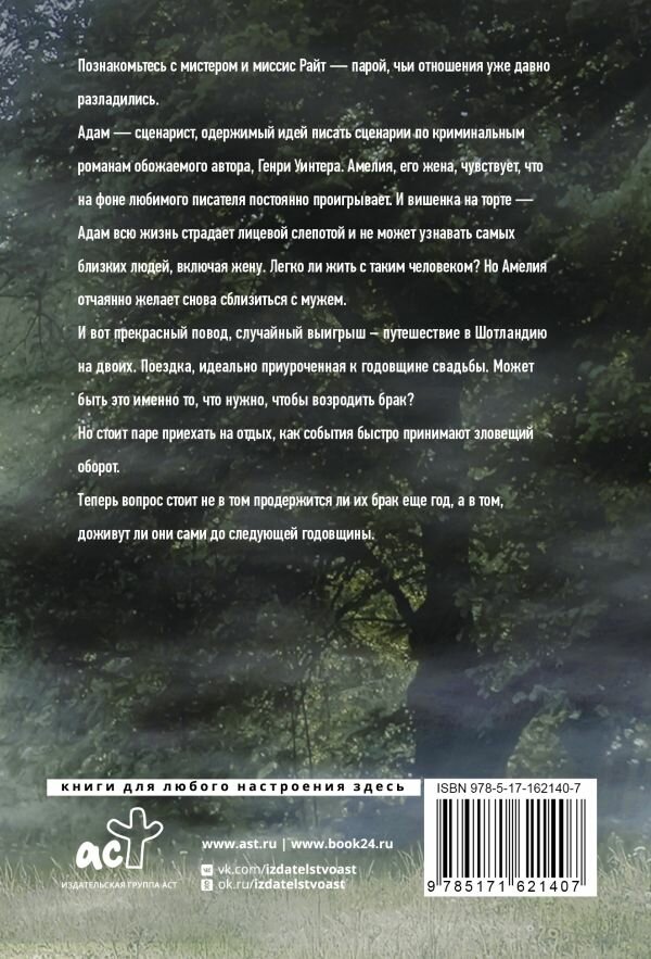 Адам — сценарист, одержимый идей писать сценарии по криминальным романам обожаемого автора, Генри Уинтера. Амелия, его жена, чувствует, что на фоне любимого писателя постоянно проигрывает. И вишенка на торте — Адам всю жизнь страдает лицевой слепотой и не может узнавать самых близких людей, включая жену. Легко ли жить с таким человеком? Но Амелия отчаянно желает снова сблизиться с мужем.