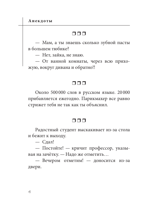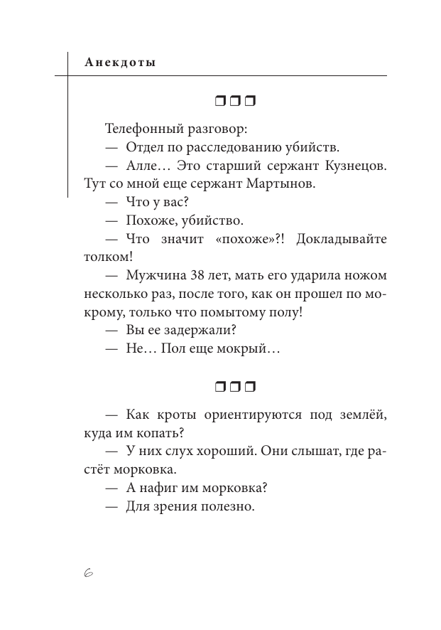 Мы не стали разбивать анекдоты по категориям, так как чтение анекдотов одной и той же тематики может утомить.