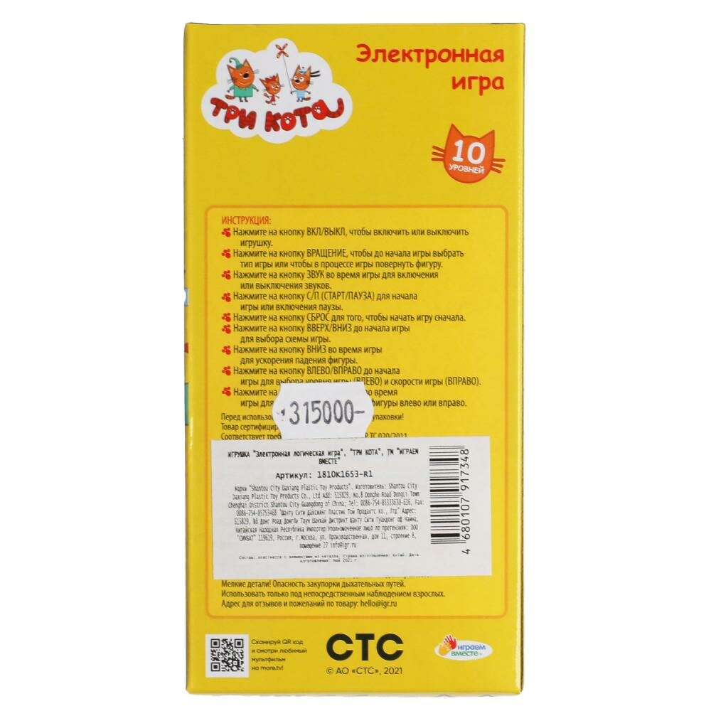 Электронная логическая игра Три кота станет прекрасным подарком для ребёнка. Эта занимательная головоломка надолго увлечёт малыша. Он с лёгкостью освоит управление и в увлекательной форме сможет развивать своё логическое мышление.