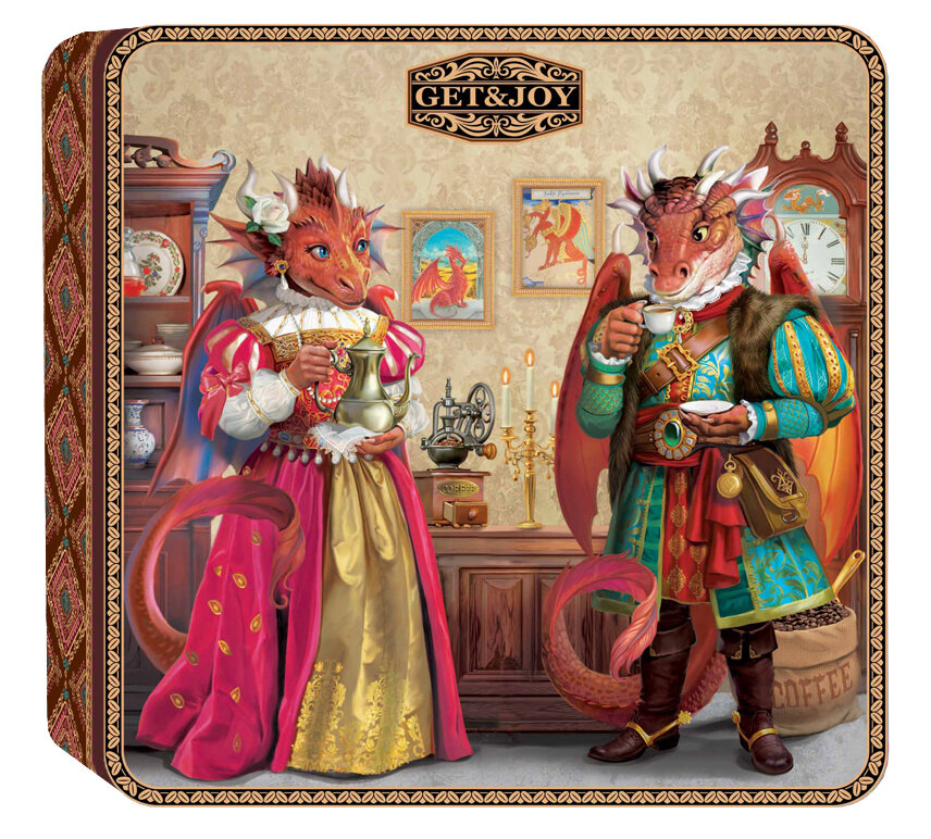 Кофе молотый GET&JOY Шкатулка-квадрат Символ года Драконы 150 г