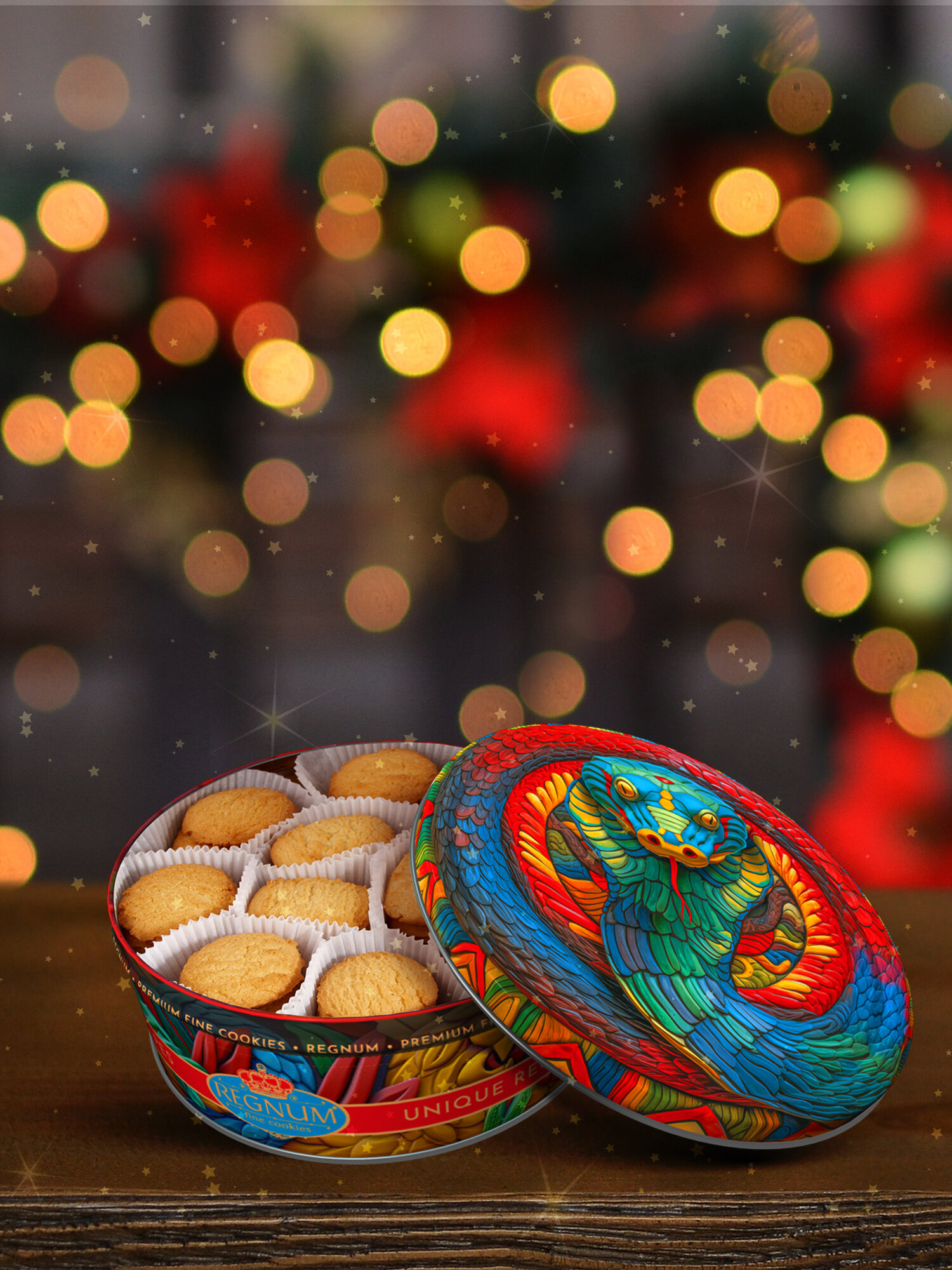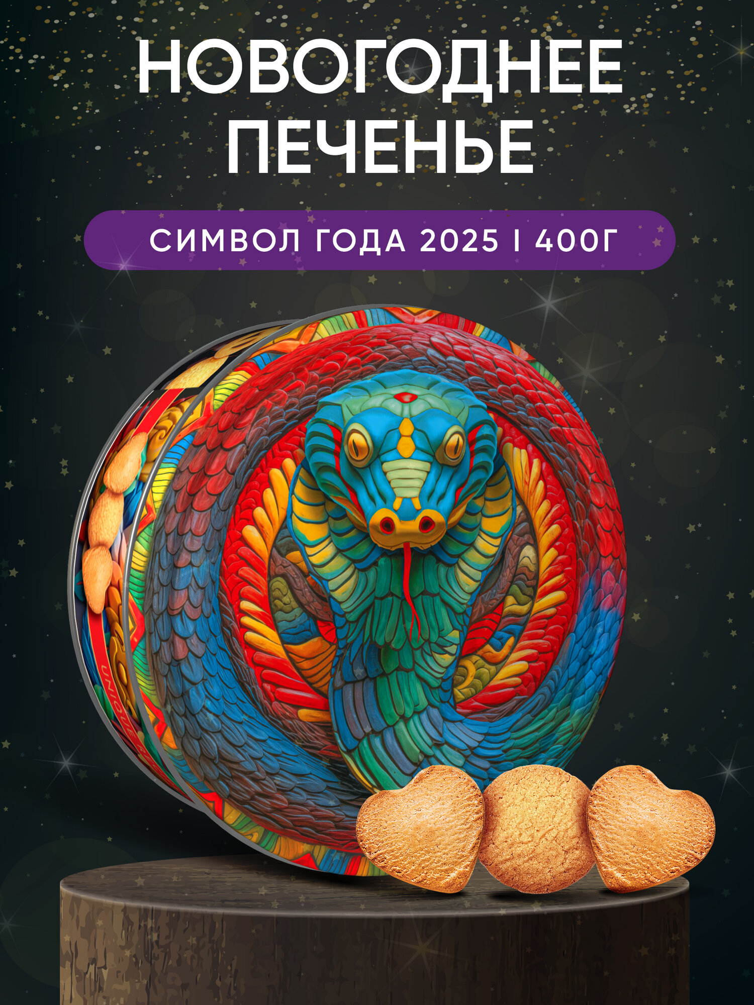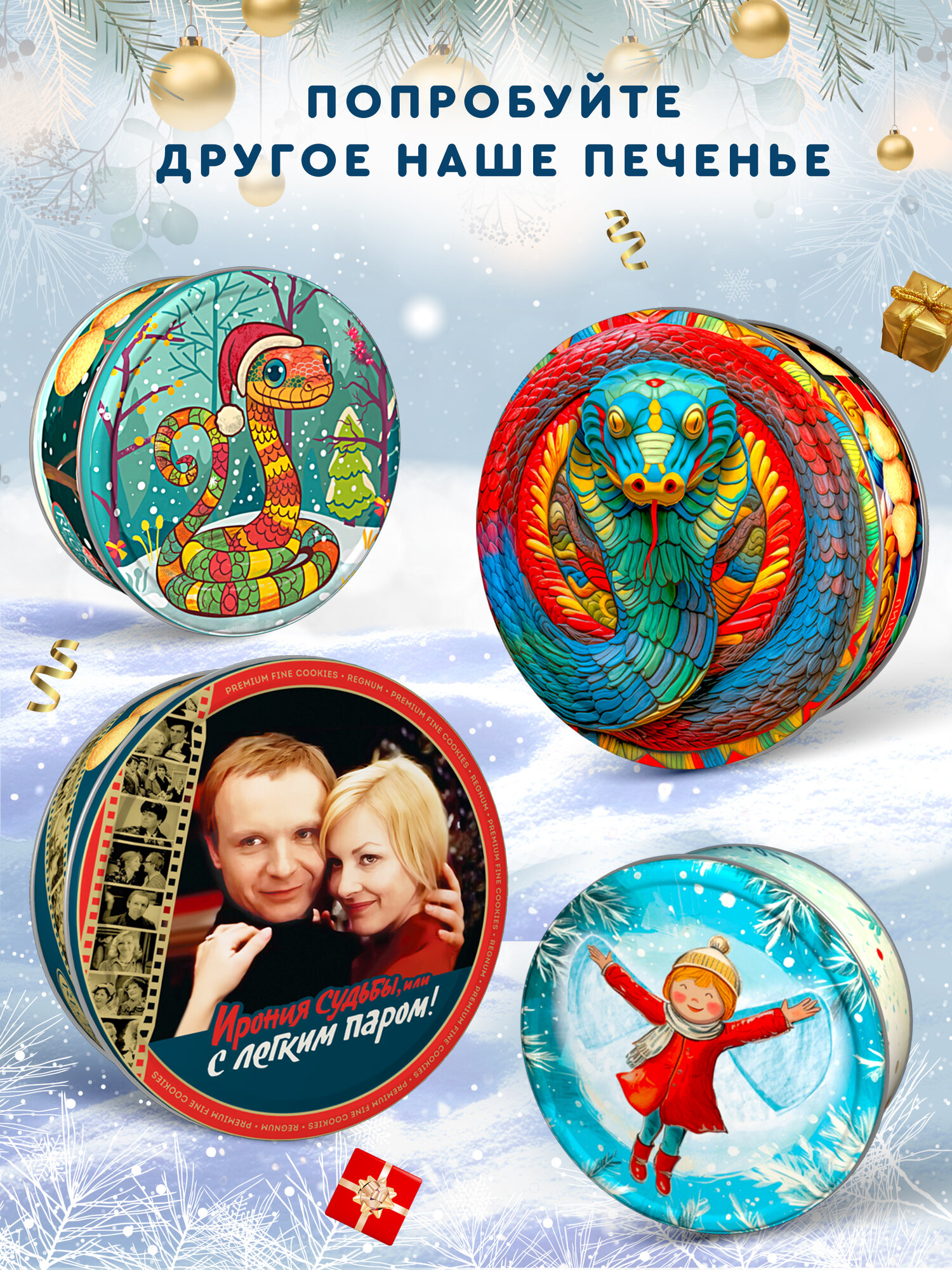 Сдобное печенье со сливочным маслом в новогодней жестяной банке с изображением Деда Мороза станет отличным подарком на зимние праздники. Печенье производится на российской фабрике с использованием натуральных ингредиентов, без добавления трансжиров. Оно упаковано в 400-граммовые банки и расфасовано в бумажные корзиночки, благодаря чему не крошится и его удобно доставать. После того, как печенье закончится, банку можно использовать для хранения мелочей или других сладостей.