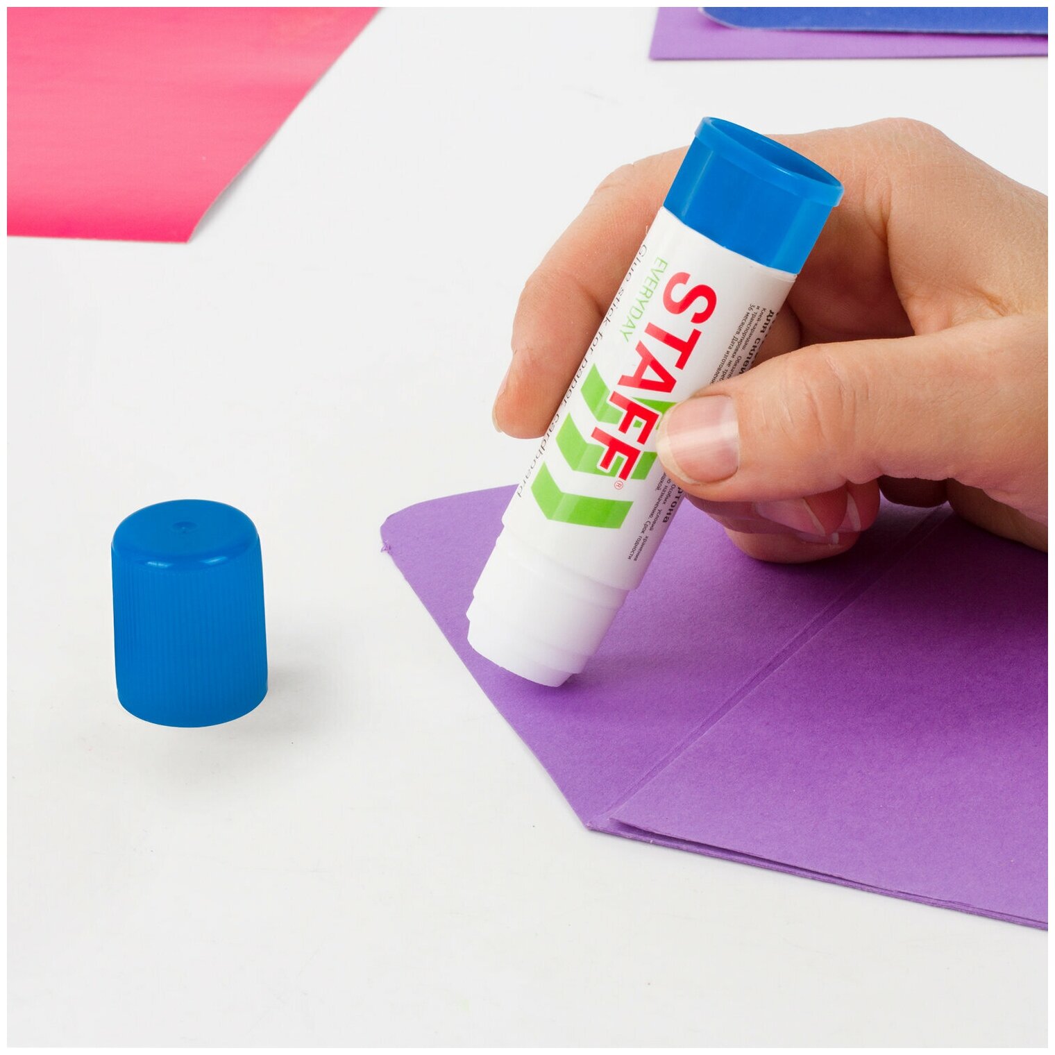 Клей-карандаш ''Staff Everyday" предназначен для склеивания бумаги, картона и фотобумаги. Прекрасный выбор для офиса, дома и школы. Компактный объем - 8 г. Клей-карандаш ''Staff'' легко наносится и распределяется по поверхности. Не токсичен и безопасен для здоровья. Удобен в использовании: он не пачкает руки, стол, одежду; легко удаляется при помощи воды. Плотно прилегающий колпачок предотвращает высыхание клея. Срок годности - 3 года.