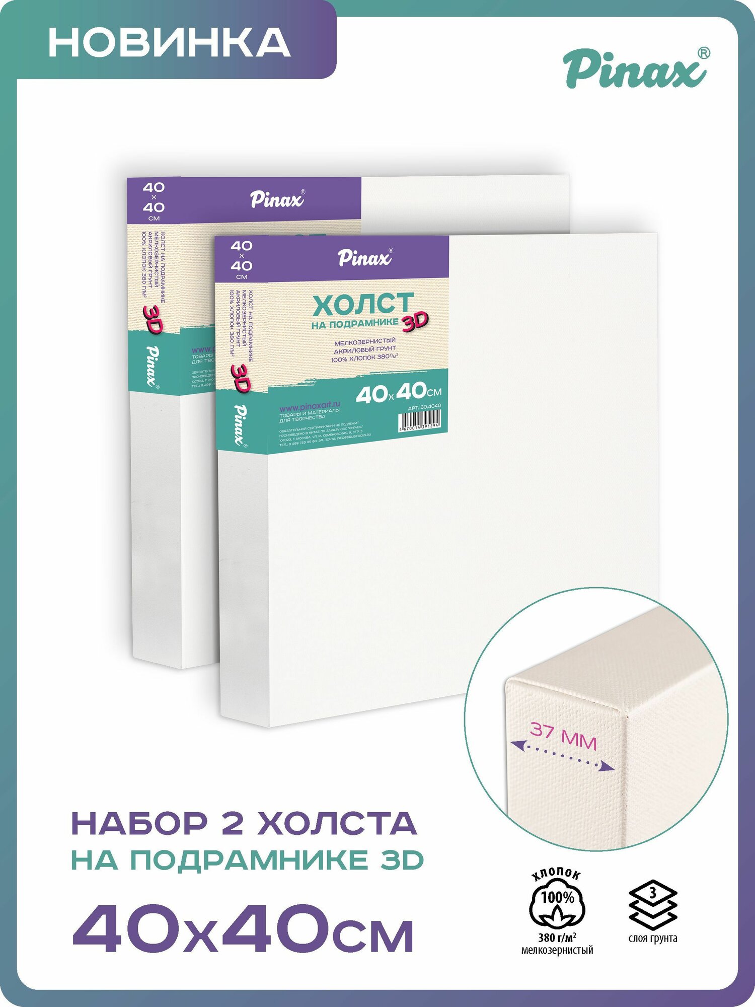 Холст на подрамнике 3D Pinax 40x40 см 100% хлопок 280 г (30.4040)