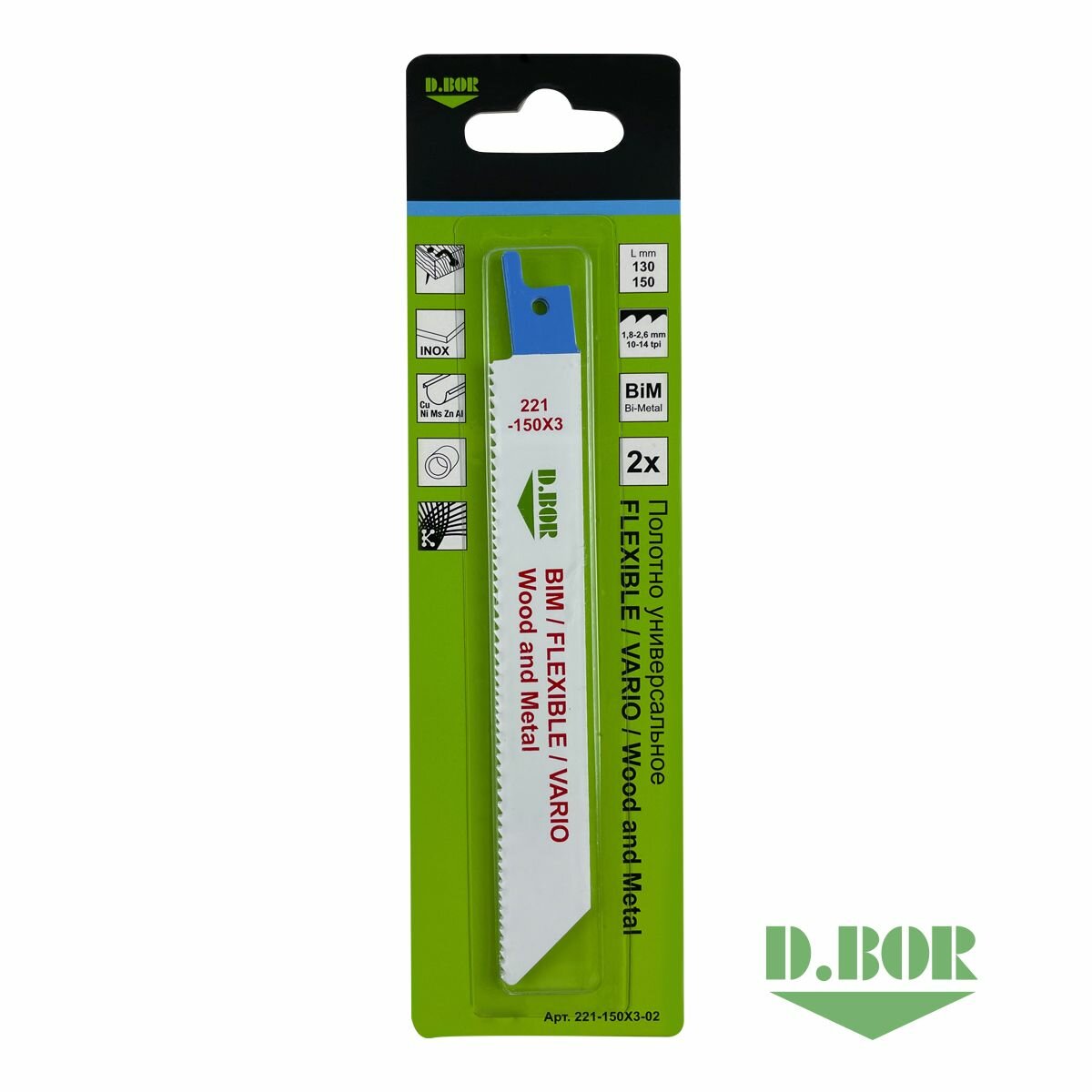 Полотно для сабельной пилы универсальное d.Bor BIM/FLEXIBLE/VARIO/Wood and Metal 130/150*18-26мм (S922VF) (2шт) D-221-150X3-02