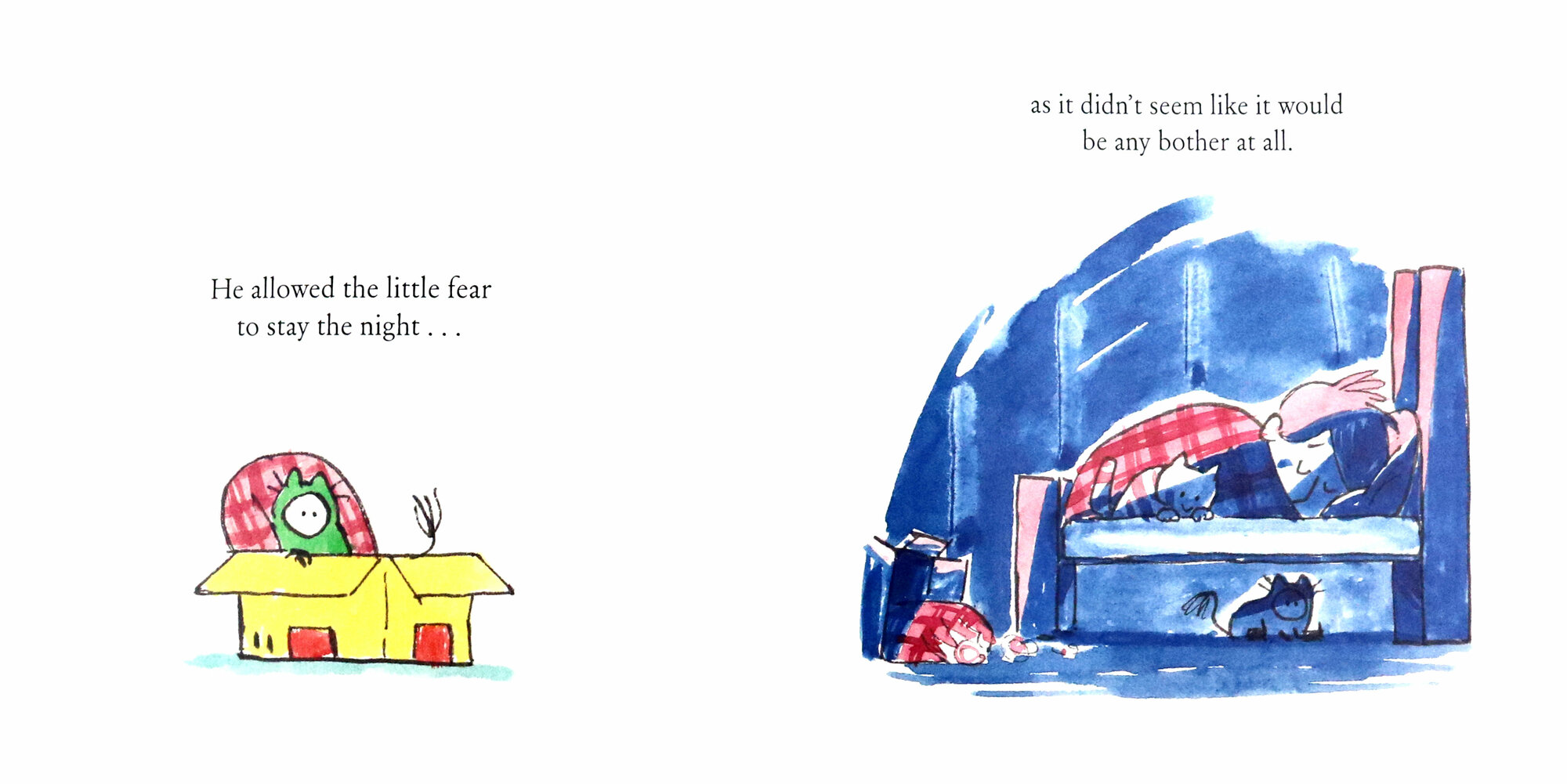 When Sam lets in a little fear one night, he’s sure it won’t be any bother. But before he knows it, the fear has grown and grown and grown. Until even the sunniest of sunny days doesn’t feel very sunny any more. There’s only one thing for it. Sam must try and be a little bit brave ….