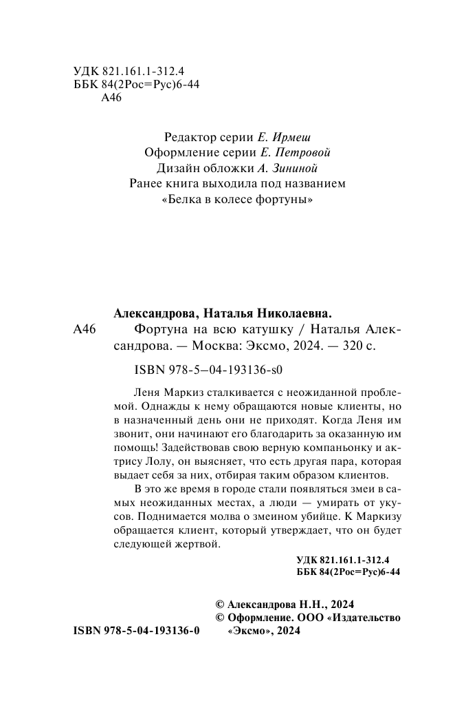 Книга: Фортуна на всю катушку (Александрова Наталья Николаевна); ООО "Издательство "Эксмо", 2023