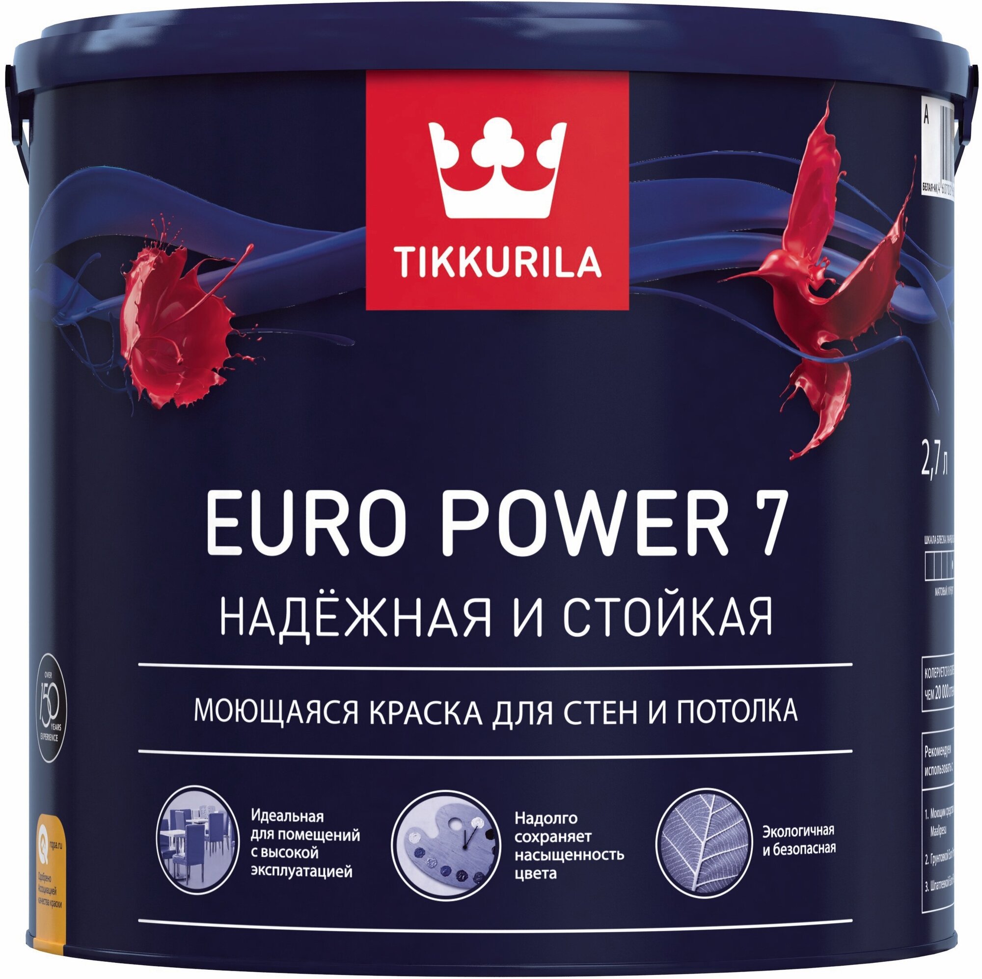 Краска Tikkurila EURO 7 база A 9 л - готовое решение для прихожей, коридора, входной группы. Подходит для отделки офисов, кафе, ресторанов, отелей, детских учреждений и др.