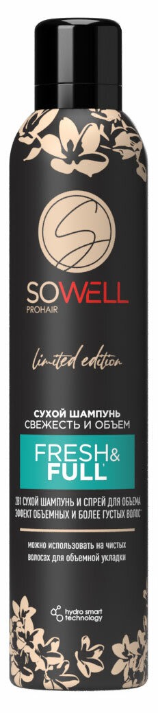 В составе косметики для волос Sowell несколько комплексов для ухода за волосами. Благодаря комплексу Hydro smart technology сухой шампунь не пересушивает волосы, питает их и обеспечивает дополнительный объем и чистоту в течение всего дня и даже дольше. Способ применения 1. Тщательно встряхните баллон и распылите средство на сухие волосы с расстояния 20 - 30 см., уделяя особое внимание корням. Подождите 30 - 60 сек. 2.