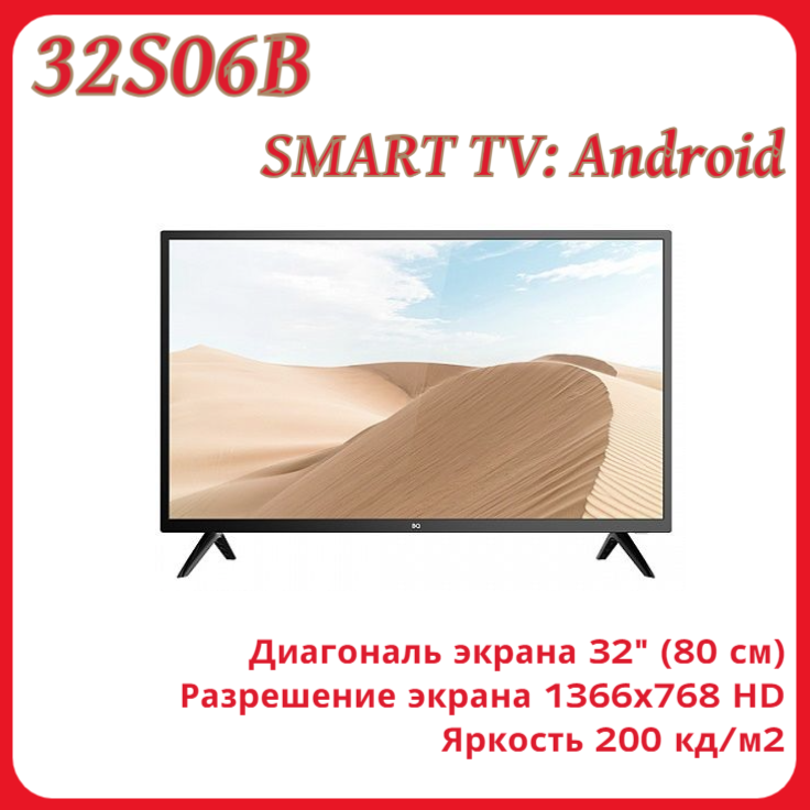 Телевизор 32" BQ 32S06B (HD 1366x768 Smart TV) черный (86198337)