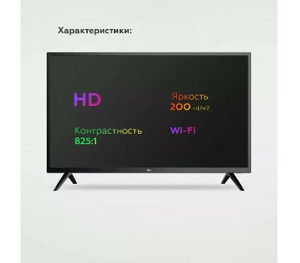 Обеспечивает комфортный просмотр благодаря 32-дюймовому экрану с разрешением 1366x768 пикселей, на котором отображается детализированная картинка с реалистичной цветопередачей. Имеет черный цвет корпуса и изящную подставку, благодаря чему легко впишется в любой интерьер.