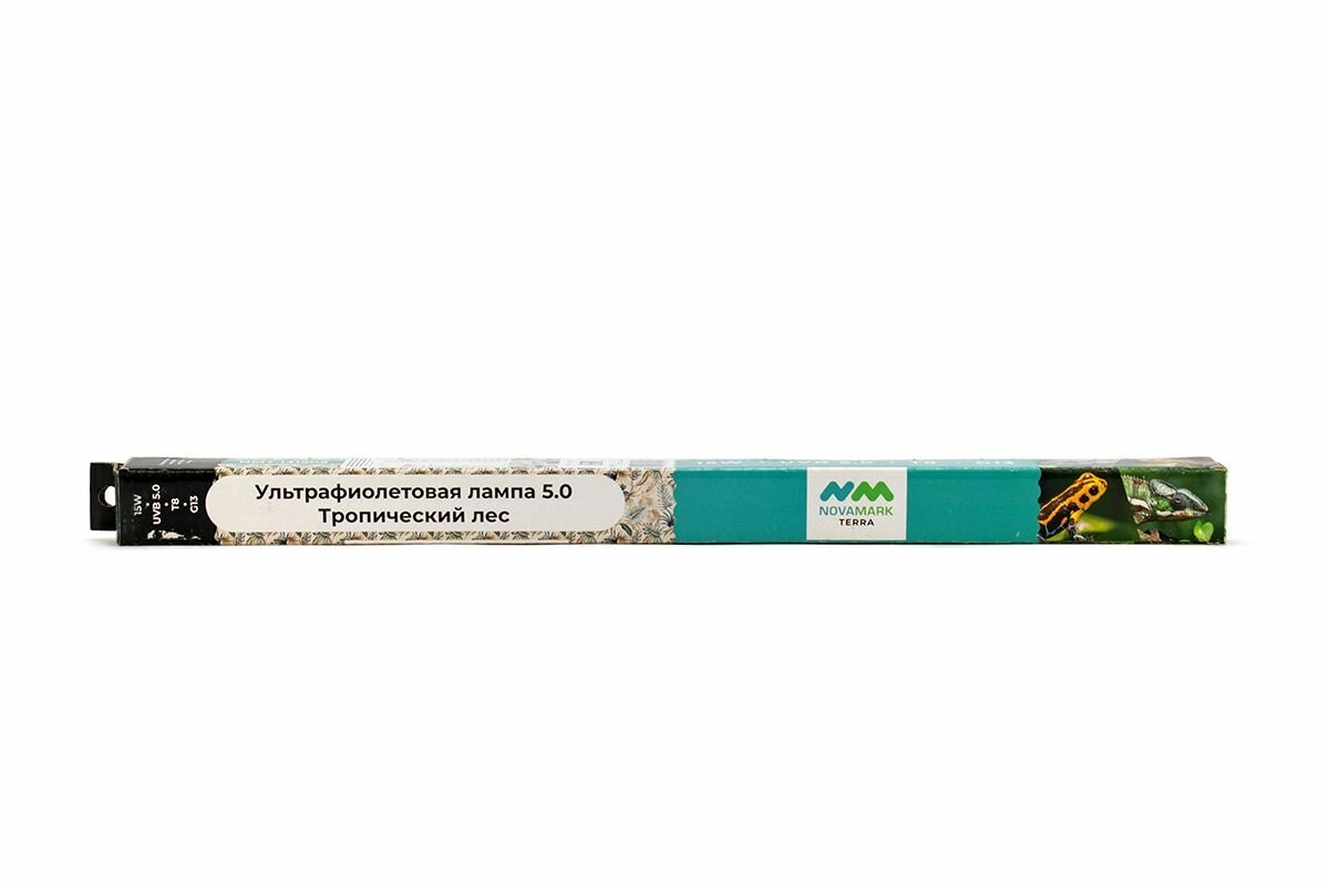Т8, 15 Вт, УФ 5%.NOVAMARK TERRA Тропический лес UVB 5.0 — люминесцентная лампа с УФ-излучением для поддерживания активности животных, аппетита и стремления к размножению и оптимального метаболизма кальция. Подходит для амфибий, рептилий и птиц, обитающих в тропических лесах и джунглях. Свет имитирует теневую среду дождевых лесов и тропических областей.Лампа не излучает достаточного количества тепла и света. В случае необходимости комбинируйте с обогревающими и световыми лампами.Оптимальная интенсивность UVB излучения помогает преобразовывать витамин D3, который обеспечивает усвоение кальция. UVB излучение является частью солнечных лучей, оно важно для здоровья террариумных животных и предотвращает метаболические заболевания.При выборе лампы необходимо учитывать не только тип UVB лампы, но и вид животного и расстояние между животным и источником UVB излучения. Силикатное стекло блокирует UVB полностью, поэтому между лампой и животным его не должно быть. Сетчатые крышки рассеивают УФ лучи всех типов, снижая количество УФ лучей в 2 раза. Через 6 месяцев из-за выгорания люминофора интенсивность УФ снижается в 2 раза.Параметры:Стандарт Т8, мощность 15 Вт, УФ-излучение 5%, длина 47 см, цветовая температура 5500К.Комплектация:Лампа в картонной упаковке.