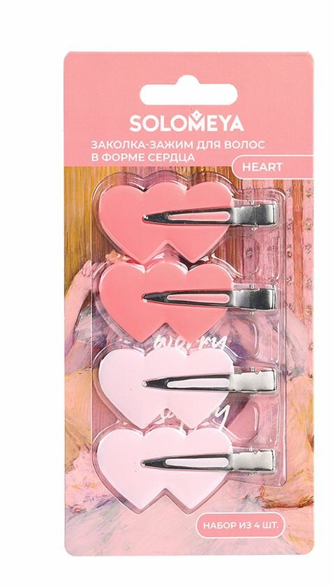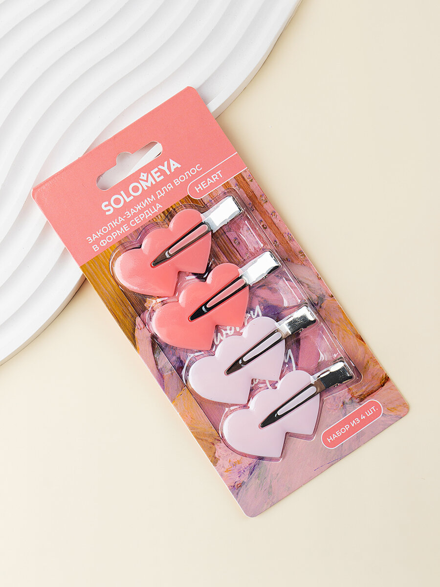 SOLOMEYA Заколка-зажим для волос в форме сердца / No Crease Hair Clips Heart набор 4 шт (14-2094)