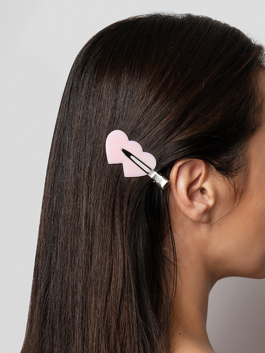 Заколка-зажим в форме сердечка добавит образу особый шарм и подчеркнет вашу женственность. Она идеально подходит для создания различных причесок – от классических до более экспериментальных. Заколка-зажим для волос в форме сердца легко закрепляется на волосах и не скользит, что позволяет не беспокоиться о прическе в течение всего дня. Также не повреждает волосы, что делает ее идеальным выбором для ежедневного использования.