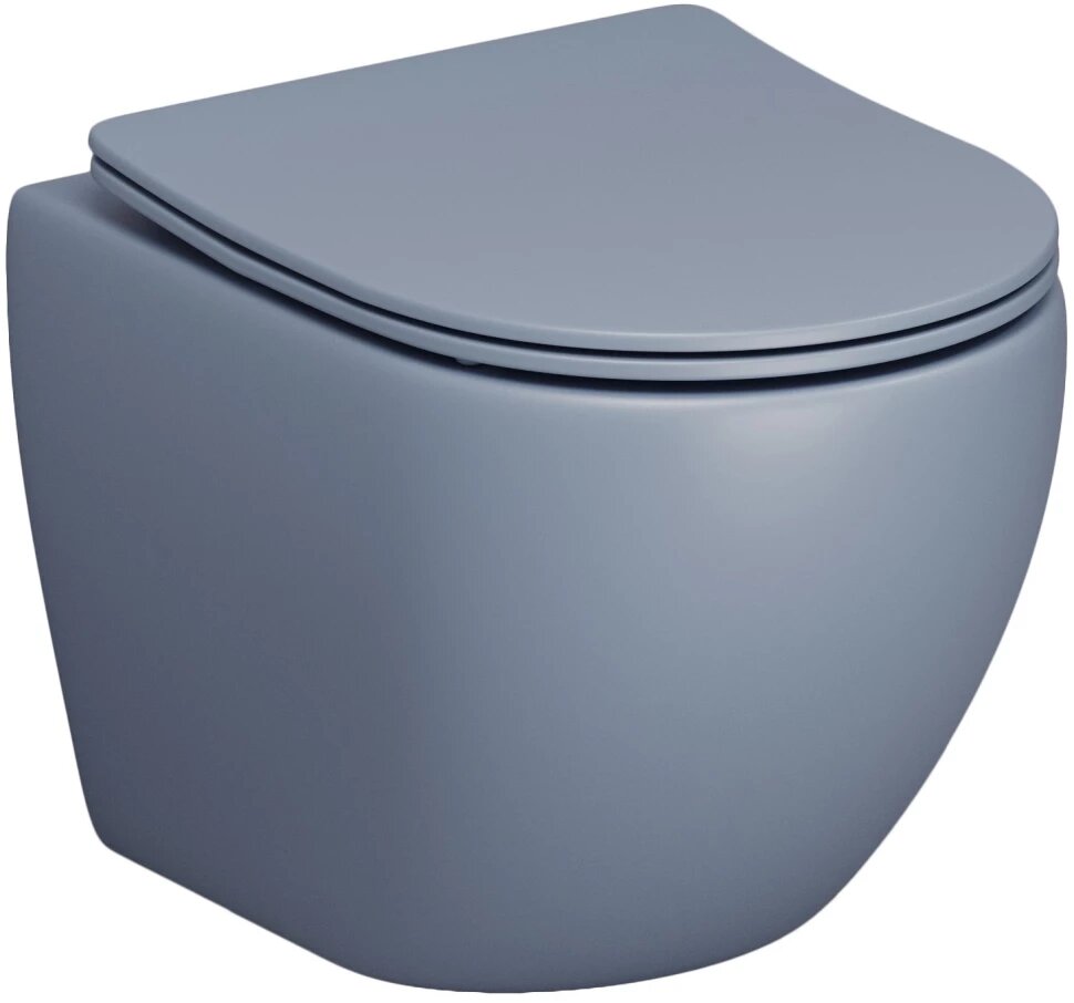 Унитаз подвесной Grossman Color безободковый с тонкой крышкой голубой матовый GR-4455BSMS-21