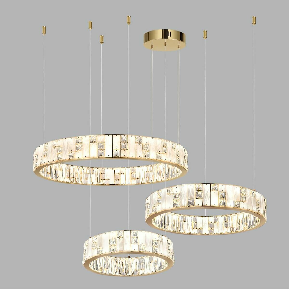 Линия Crossa — абсолютная новинка — роскошное сочетание элементов из алебастра и хрусталя. Алебастр в светодиодном освещении особенно великолепен, излучая необыкновенную белизну природного камня. Кольцевые светильники в 3-х размерах, горизонтальный светильник и бра образуют коллекцию моделей. Кольца диаметром 480, 600 и 800 мм возможно устанавливать как по отдельности (2 версии положения струн — стандартное и прямое), так и в композиции из 2–3-х колец. Для композиций есть отдельные базы, в которые устанавливаются драйверы от колец и осуществляется коммутация.