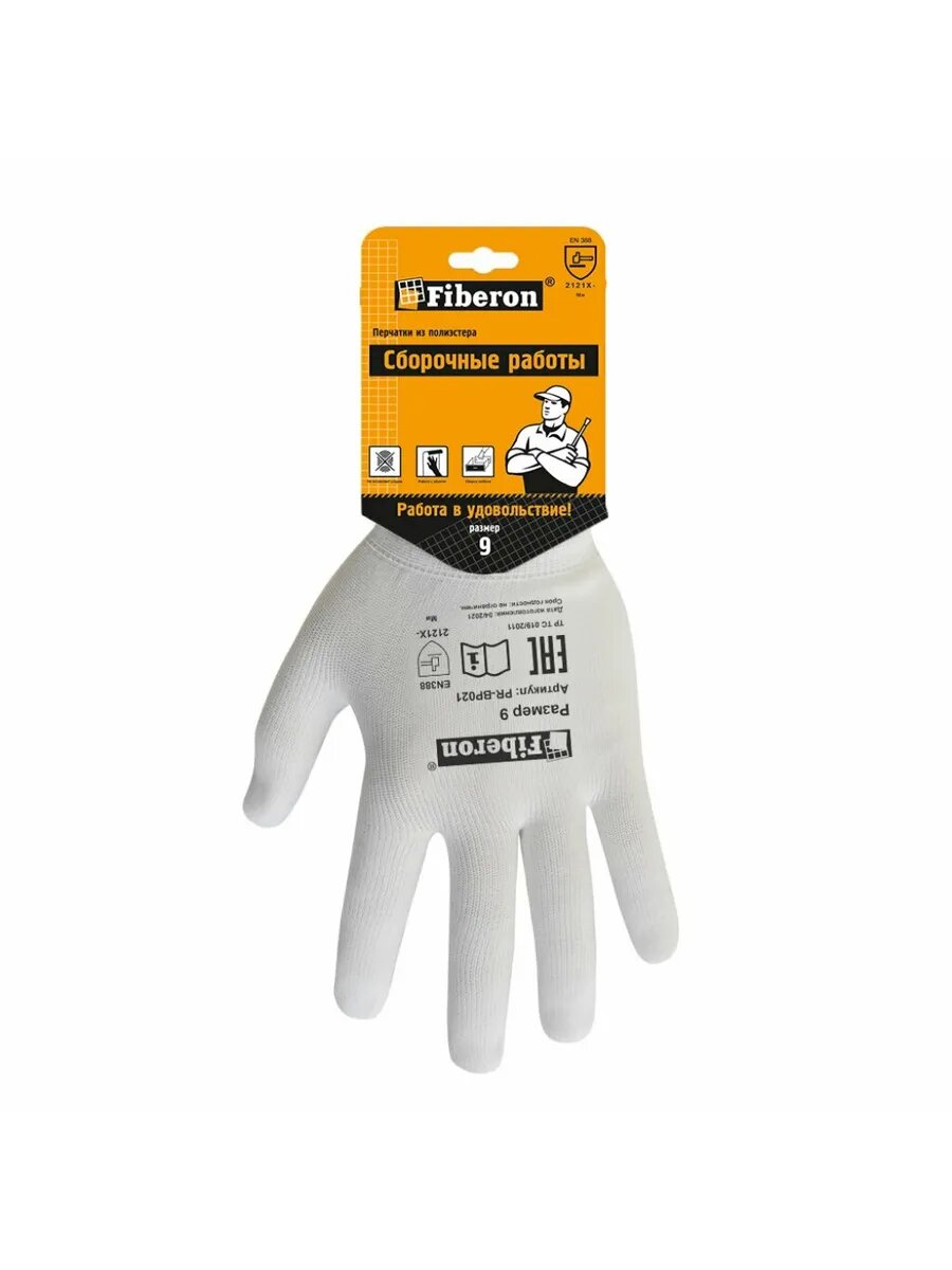 Перчатки полиэстеровые Fiberon белые размер 9 / L 123108 (размер: 9 (L))