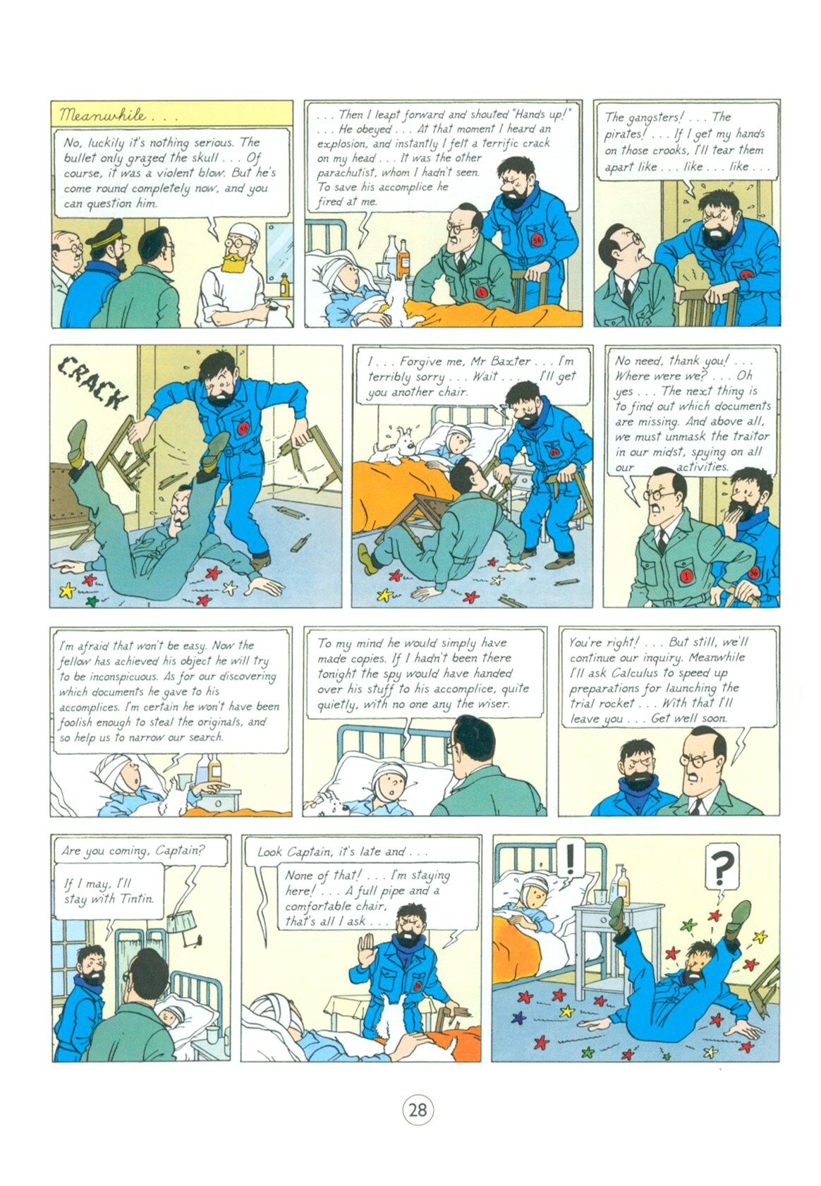 Tintin and Captain Haddock are amazed to find that Professor Calculus is planning a top-secret project from the Sprodj Atomic Research Centre in Syldavia. And before our intrepid hero knows it, the next stop on this adventure is … space.