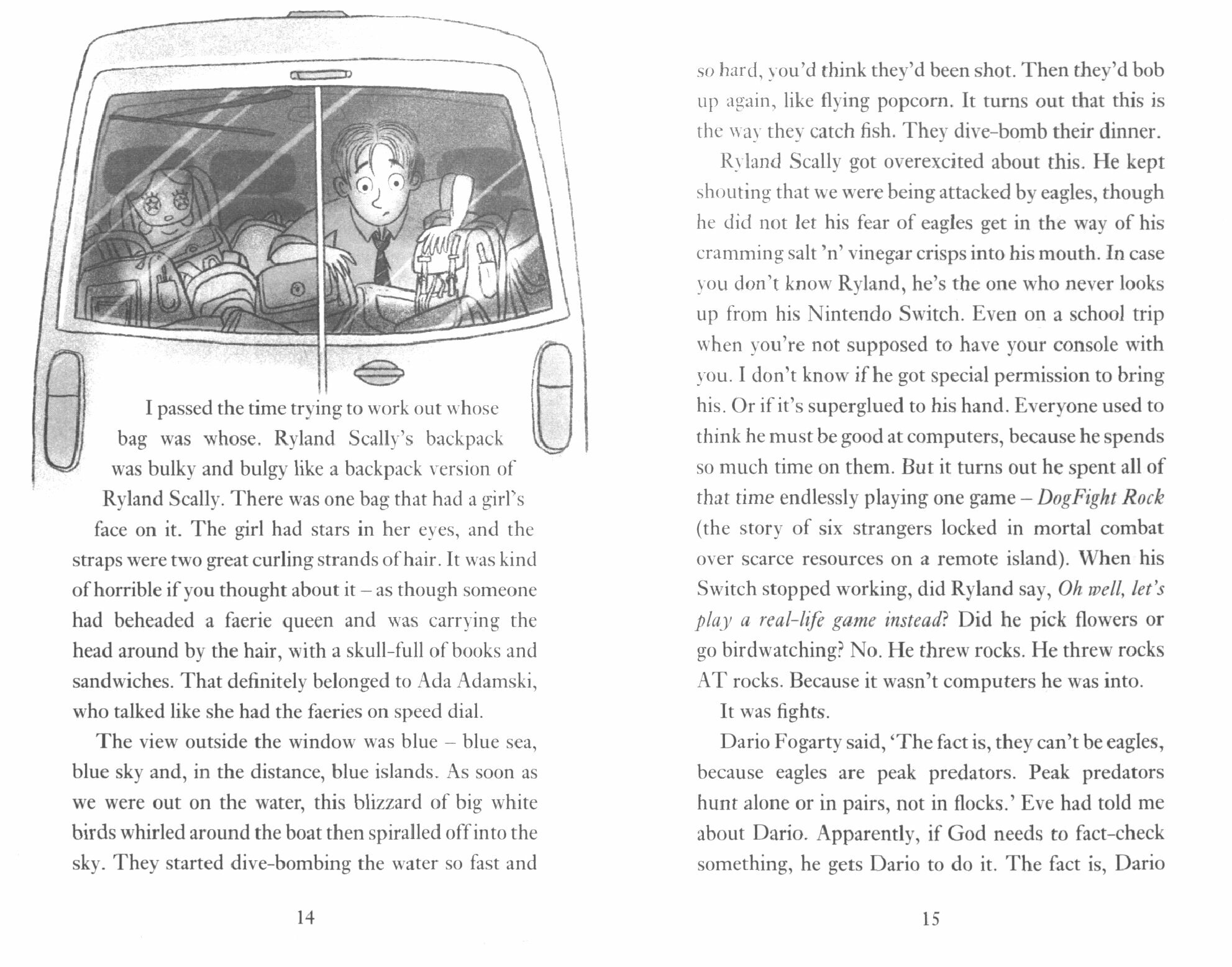 Eleven-year old Noah sneaks along on his big sister's geography field trip. Everything goes wrong! Six kids are marooned on an uninhabited island. Their teacher has vanished. They're hungry. Their phones don't work and Noah has broken the internet. There's no way of contacting home . . . Disaster!
