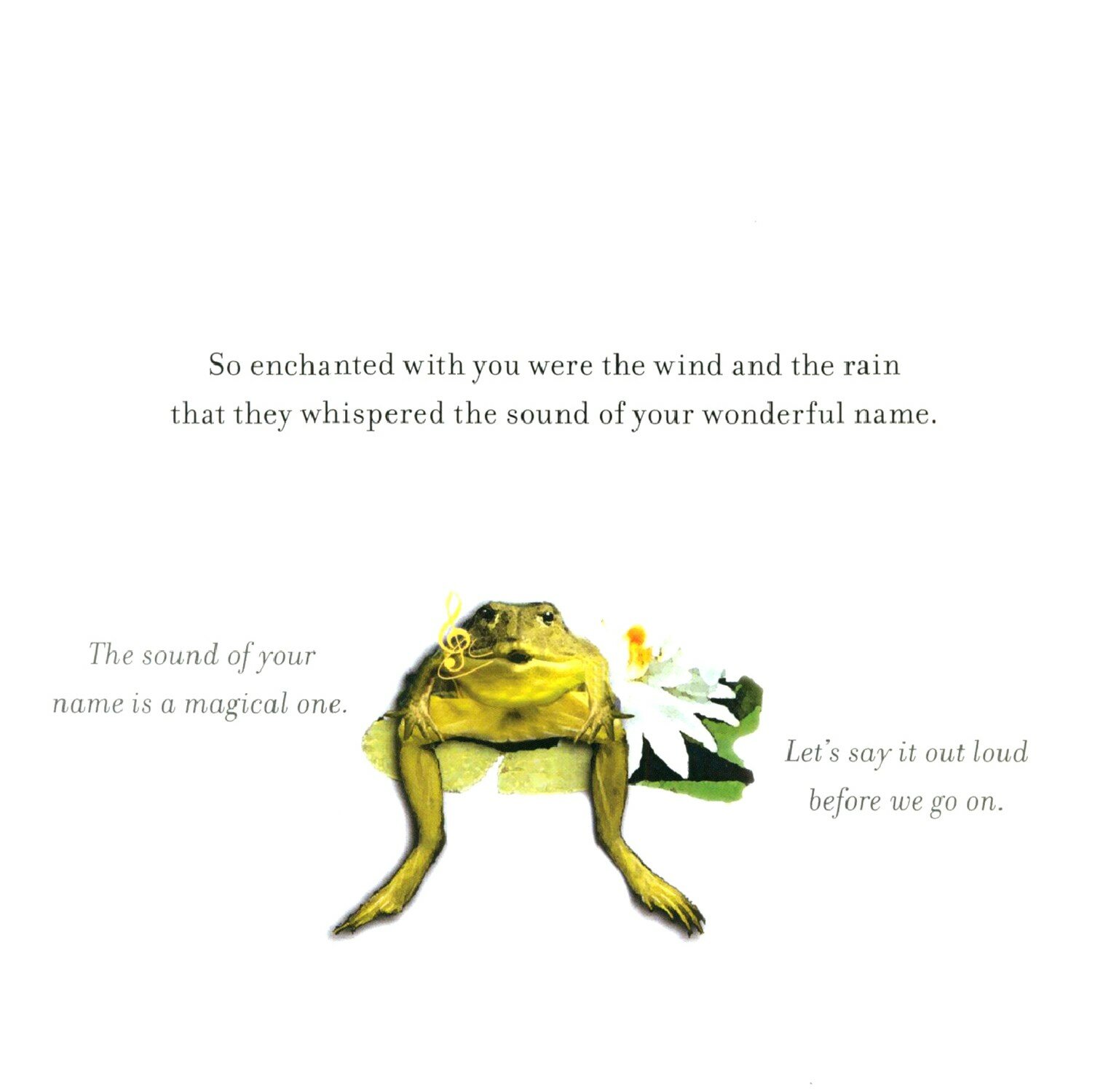 This is a book that celebrates you, weaving an enchantingly beautiful depiction of the natural world, as different animals come together to welcome its newest arrival.