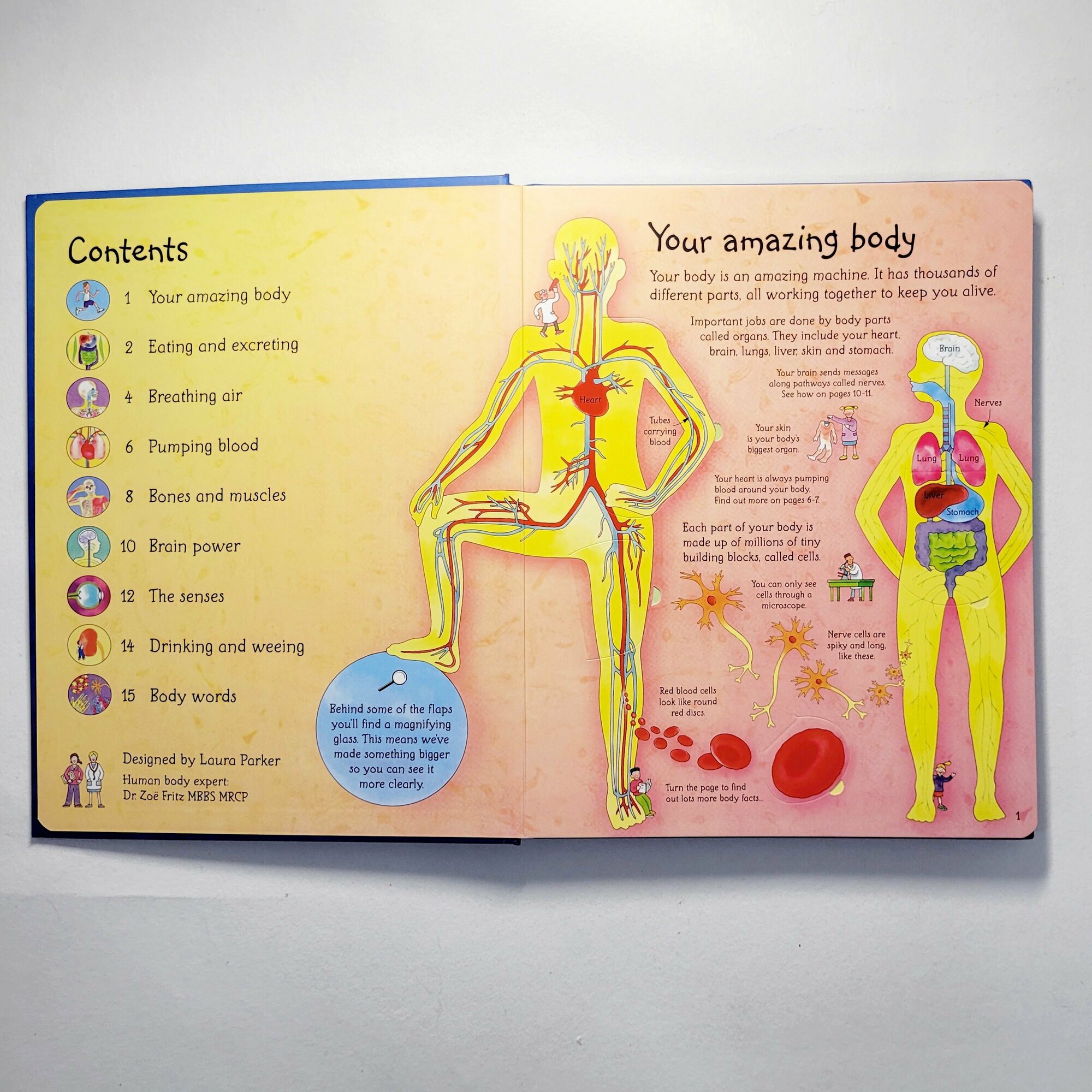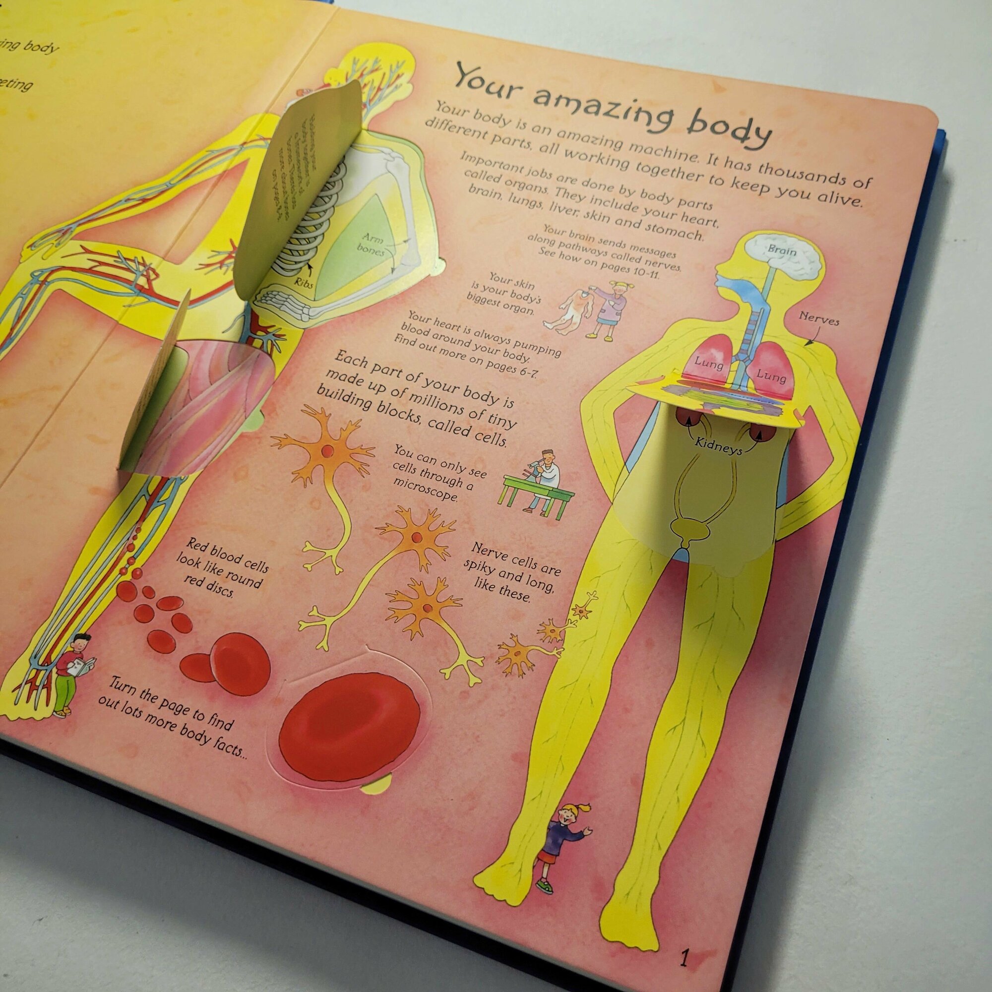 Fabulous flap book that reveals the inner workings of the human body. Bright, original colour illustrations and diagrams display all the major organs of the human body and are accompanied by witty, clear and informative text. Contains over fifty embedded flaps that children can lift to reveal extra detail.