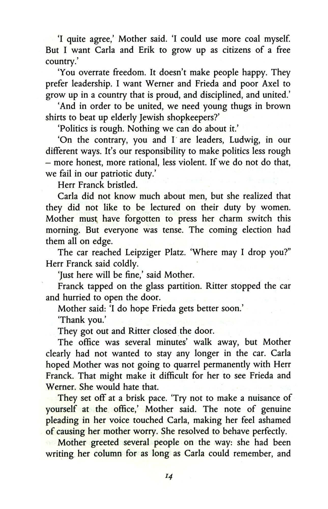Berlin is in turmoil. Eleven-year-old Carla von Ulrich struggles to understand the tensions disrupting her family as Hitler strengthens his grip on Germany. Many are resolved to oppose Hitler’s brutal regime – but are they willing to betray their country?