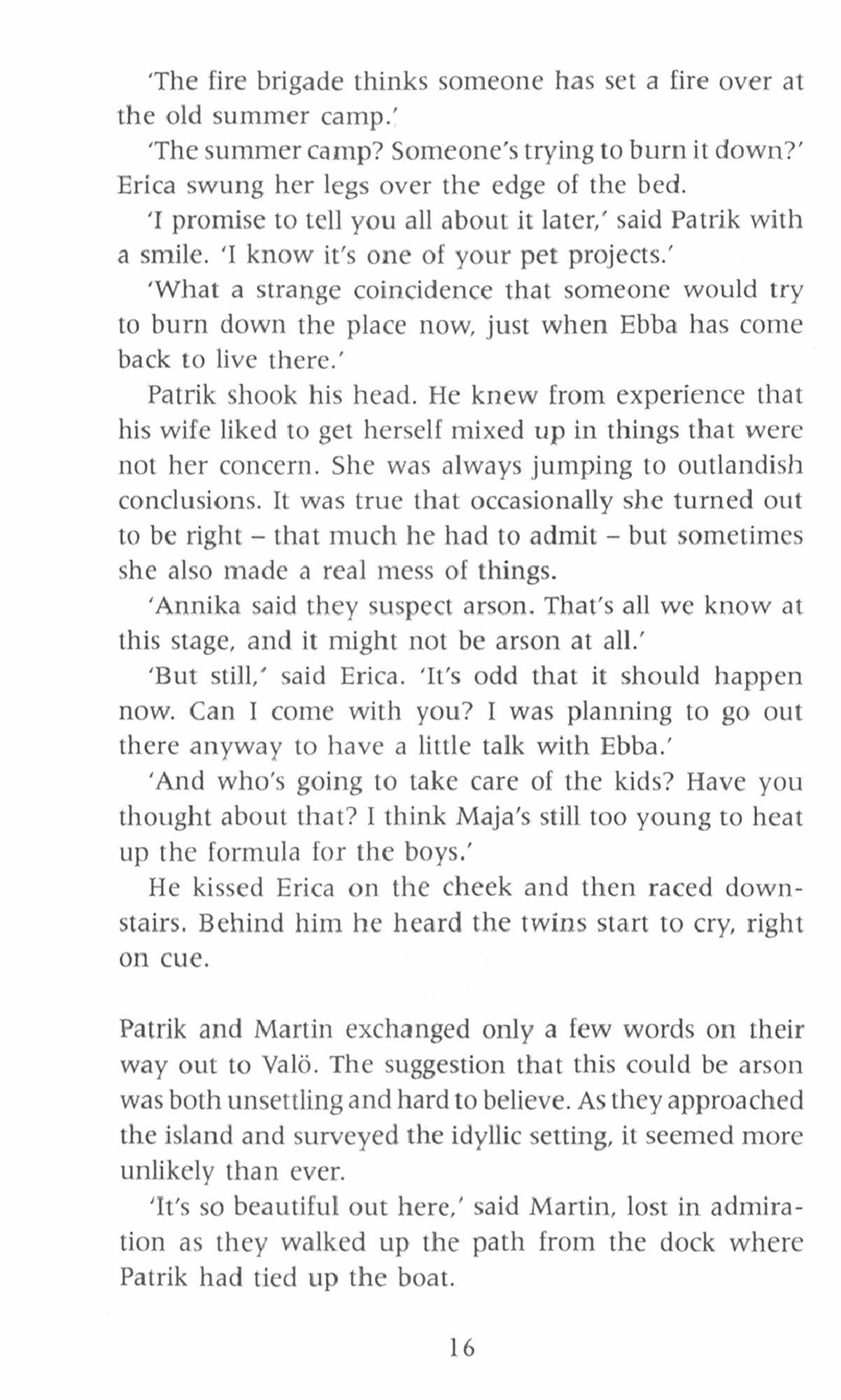 Now, years later, Ebba has returned to the island. She and her husband have suffered the loss of their only child and are looking to make a fresh start. But within days, their house is the target of an arson attack.